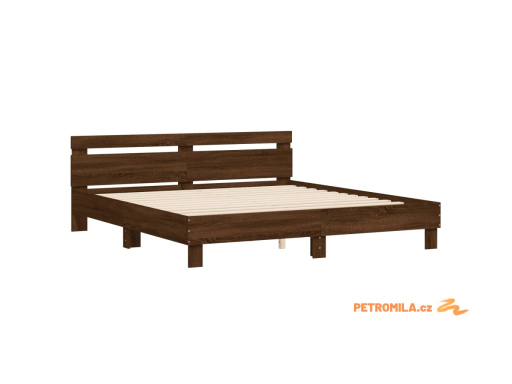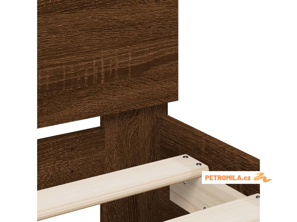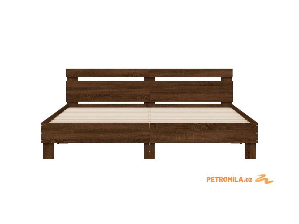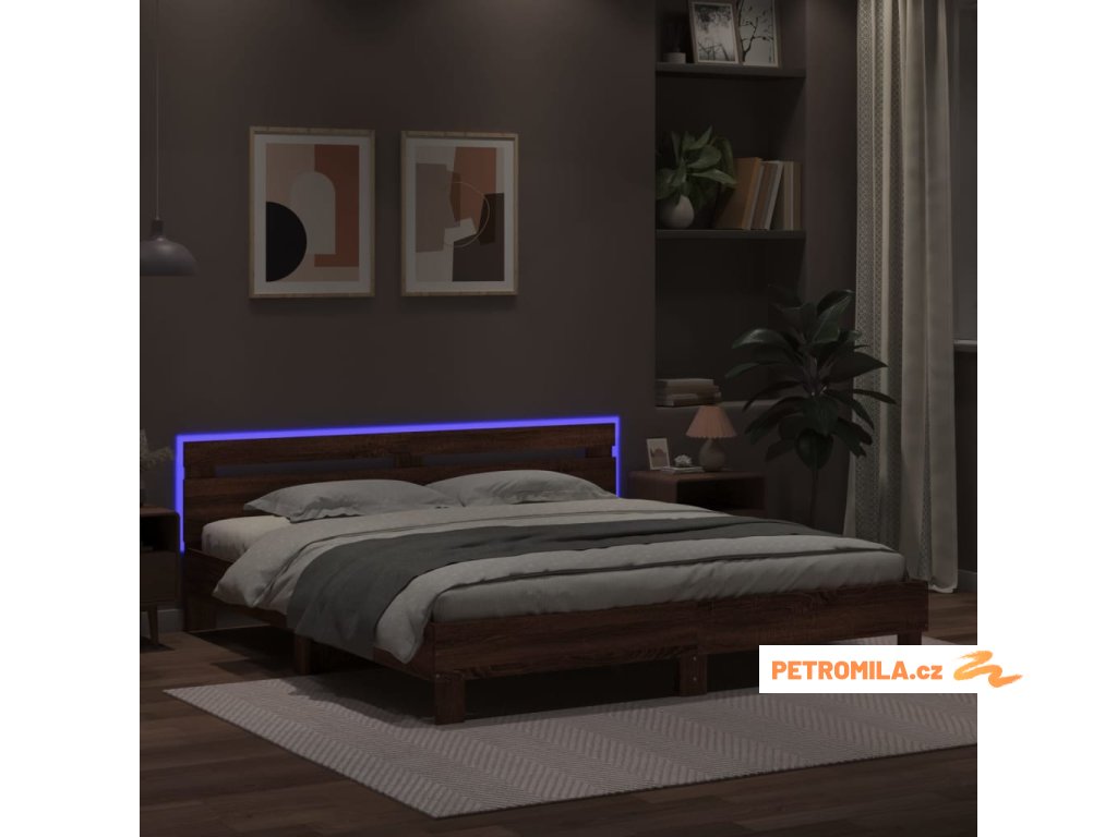 Rám postele s čelem a LED osvětlením hnědý dub 200 x 200 cm