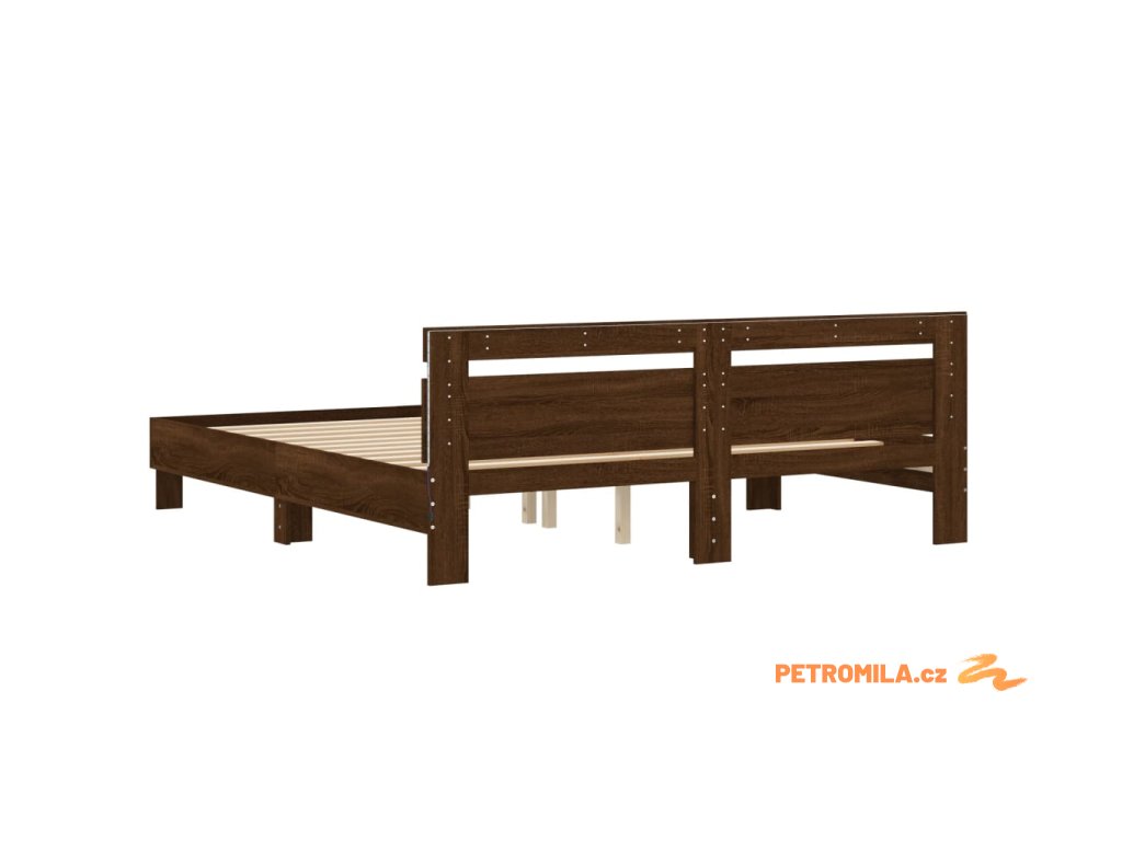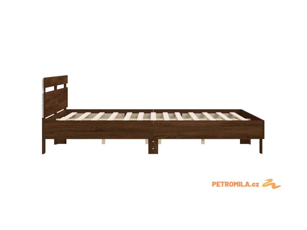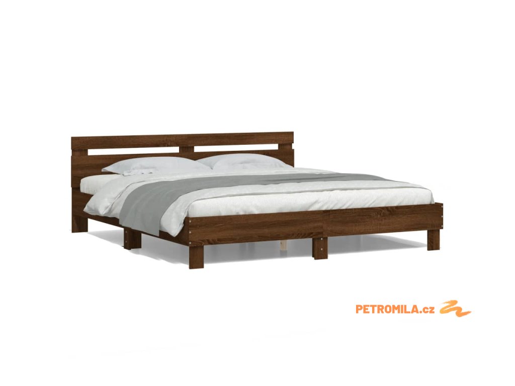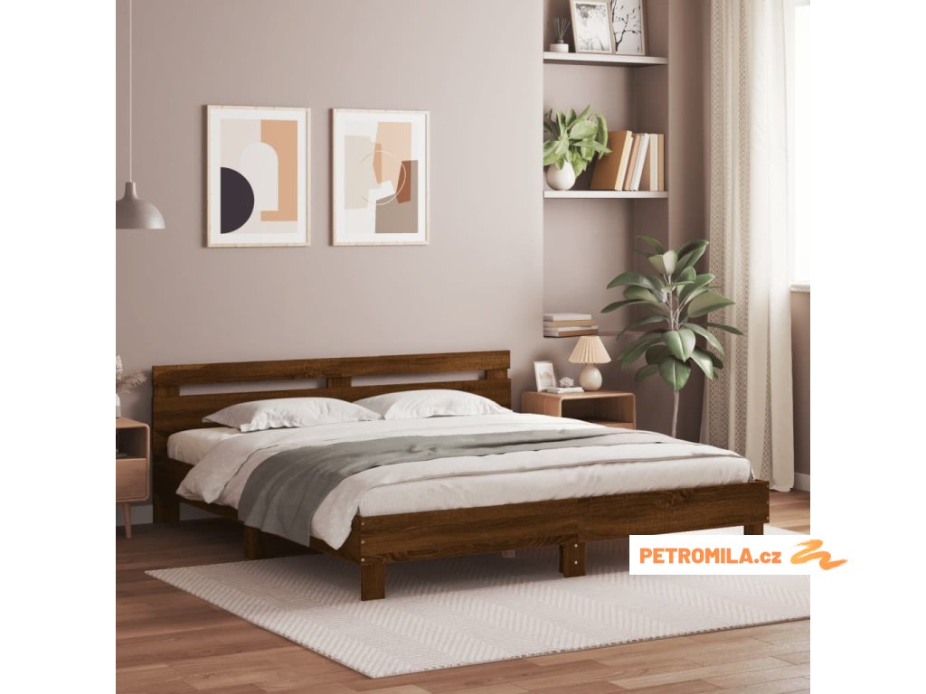Rám postele s čelem a LED osvětlením hnědý dub 200 x 200 cm