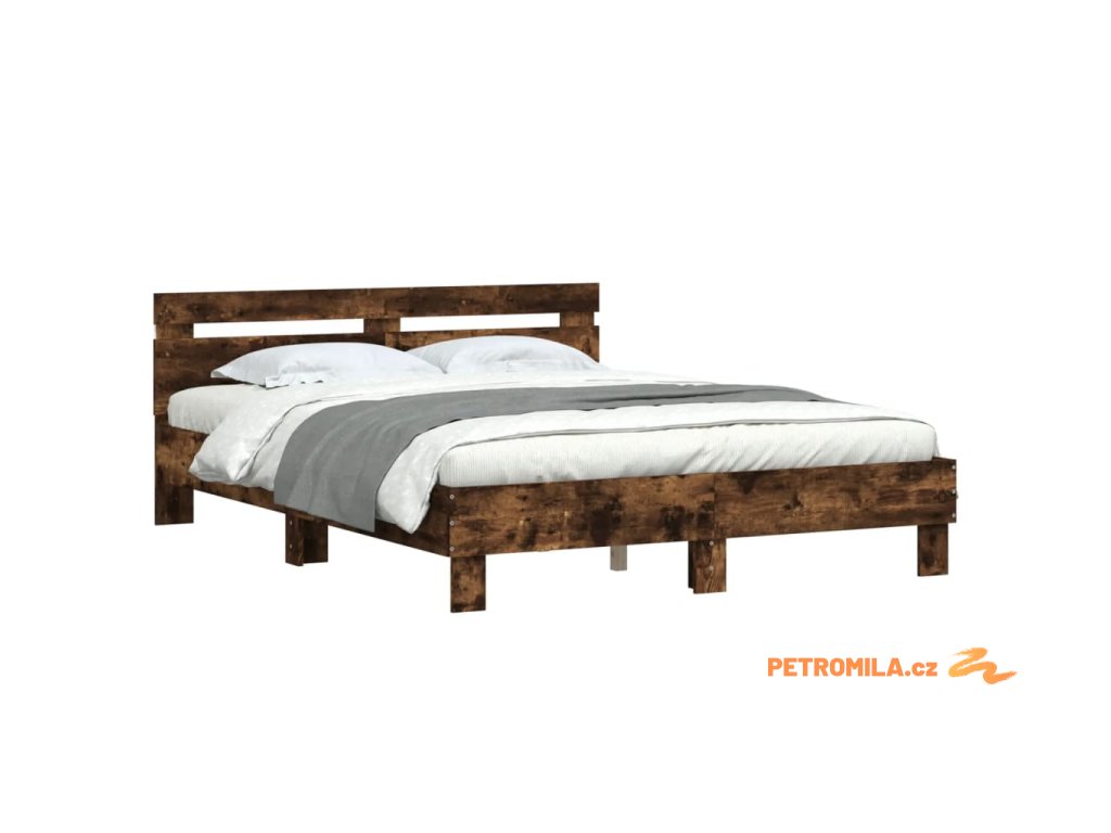 Rám postele s čelem a LED osvětlením kouřový dub 140 x 200 cm