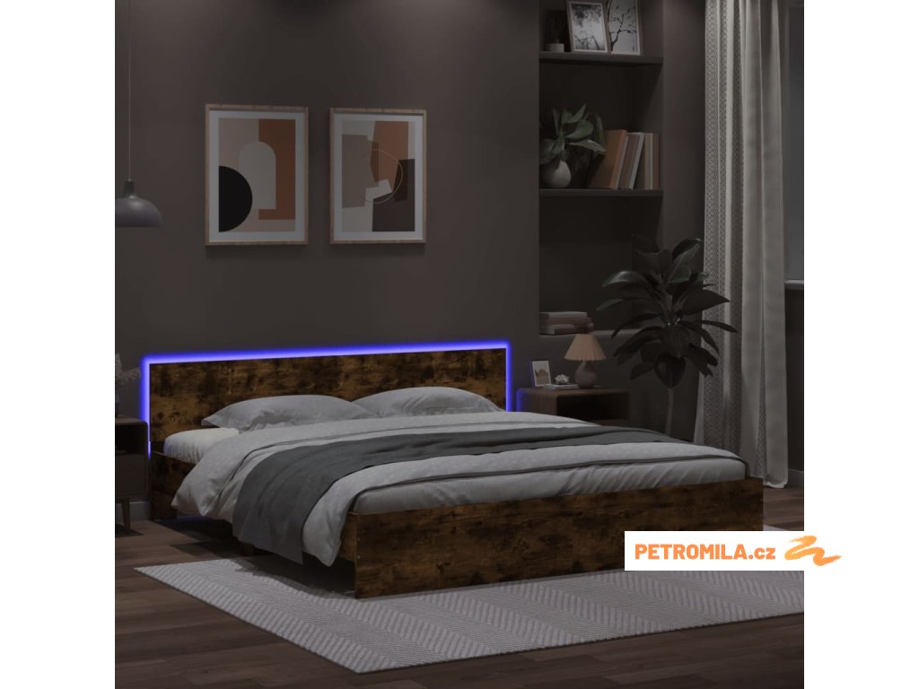 Rám postele s čelem a LED osvětlením kouřový dub 200 x 200 cm
