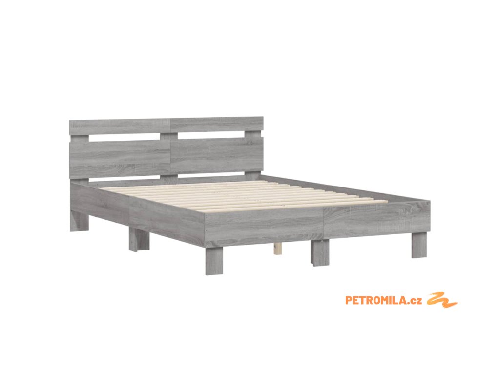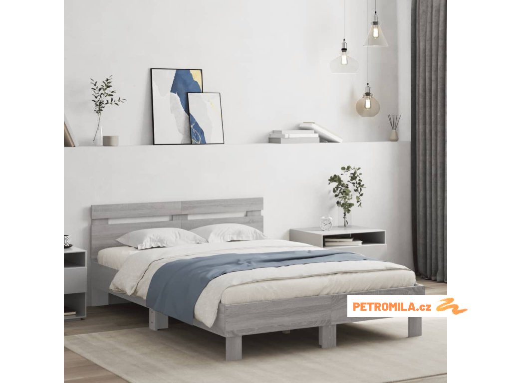 Rám postele s čelem a LED osvětlením šedý sonoma 120 x 200 cm