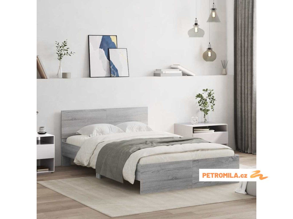Rám postele s čelem a LED osvětlením šedý sonoma 135 x 190 cm