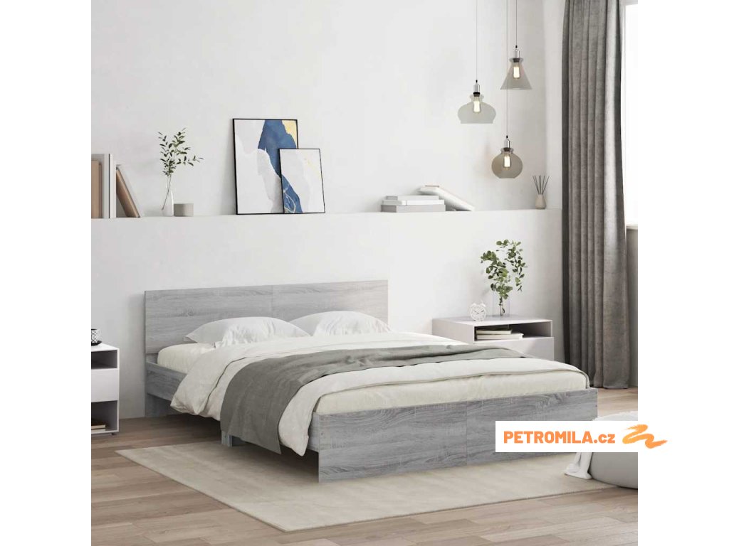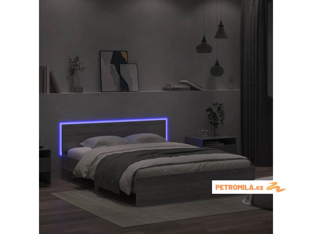 Rám postele s čelem a LED osvětlením šedý sonoma 150 x 200 cm