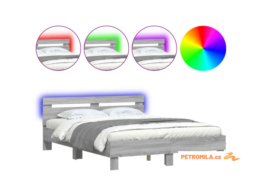 Rám postele s čelem a LED osvětlením šedý sonoma 150 x 200 cm