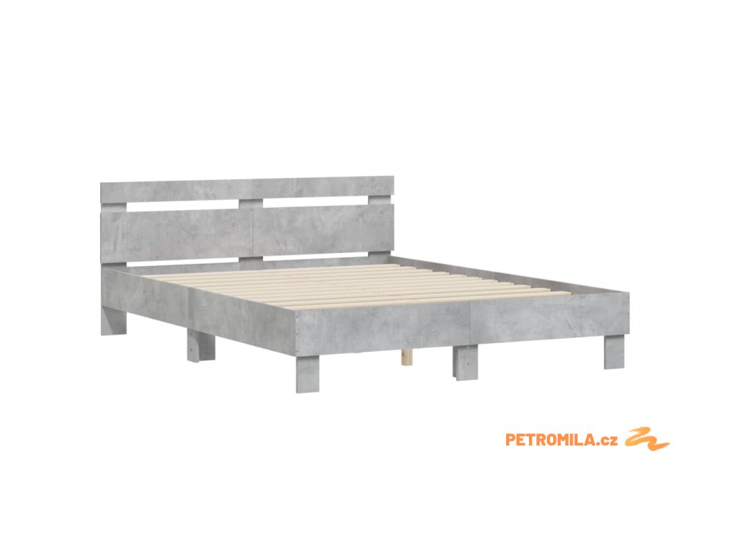 Rám postele s čelem betonově šedý 140 x 190 cm kompozitní dřevo