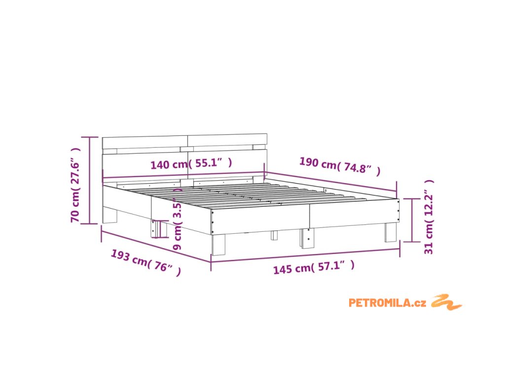 - Vhodné rozměry matrace: 140 x 190 cm (Š x D) (matrace není součástí balení)