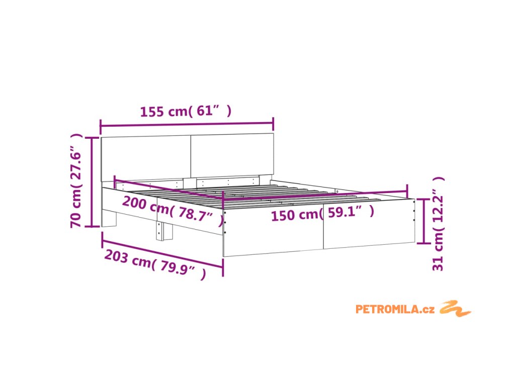 Rám postele s čelem betonově šedý 150 x 200 cm