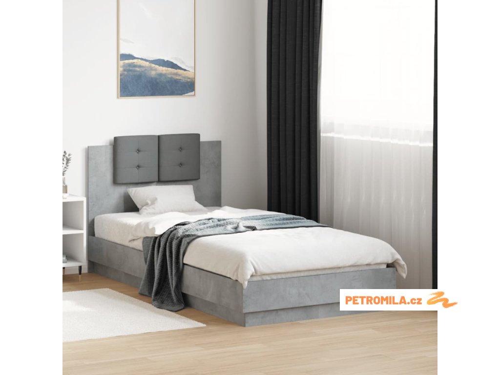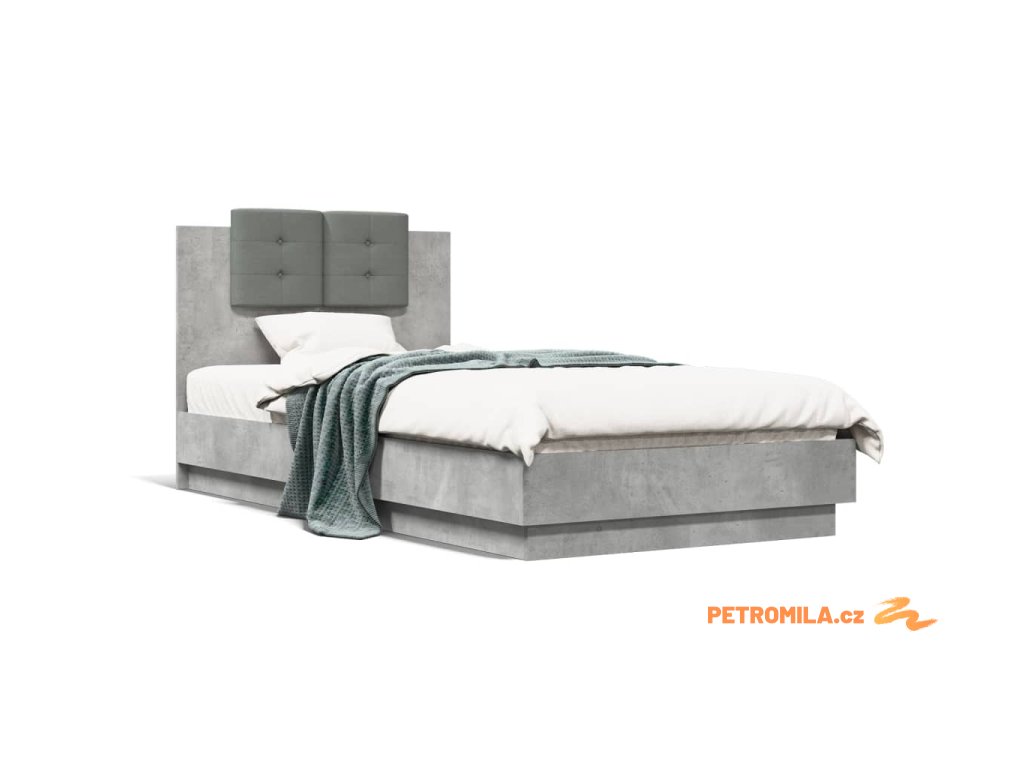 Rám postele s čelem betonově šedý 90 x 190 cm kompozitní dřevo