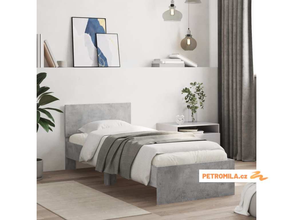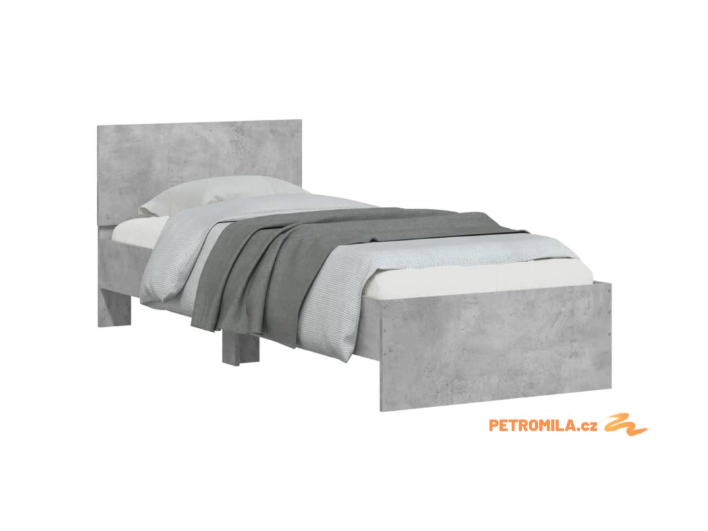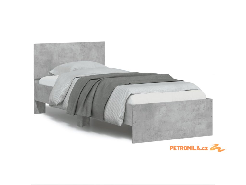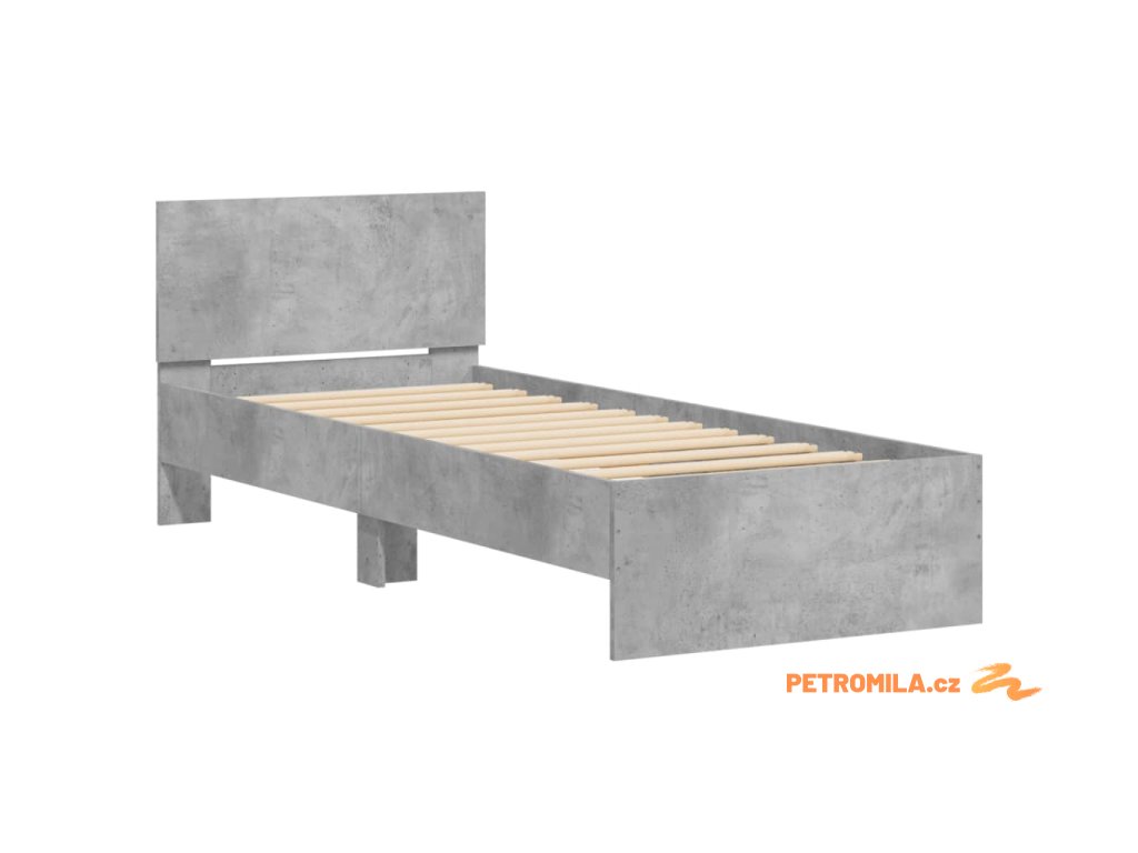 Rám postele s čelem betonově šedý 90 x 200 cm kompozitní dřevo
