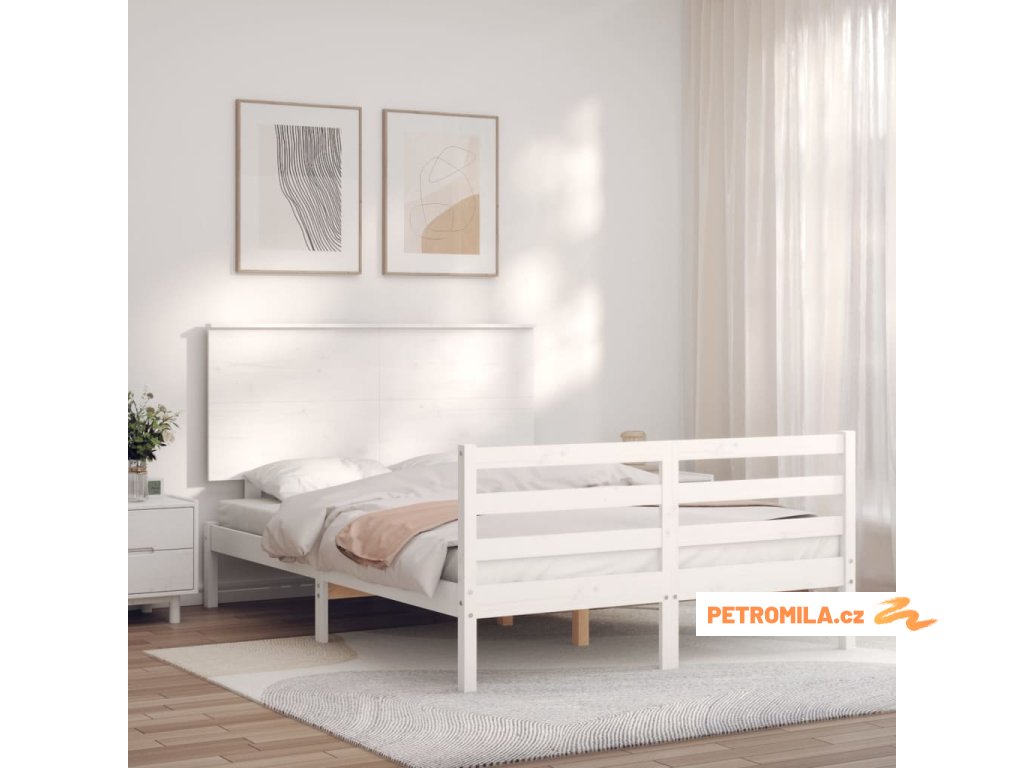 Rám postele s čelem bílý 140 x 190 cm masivní dřevo