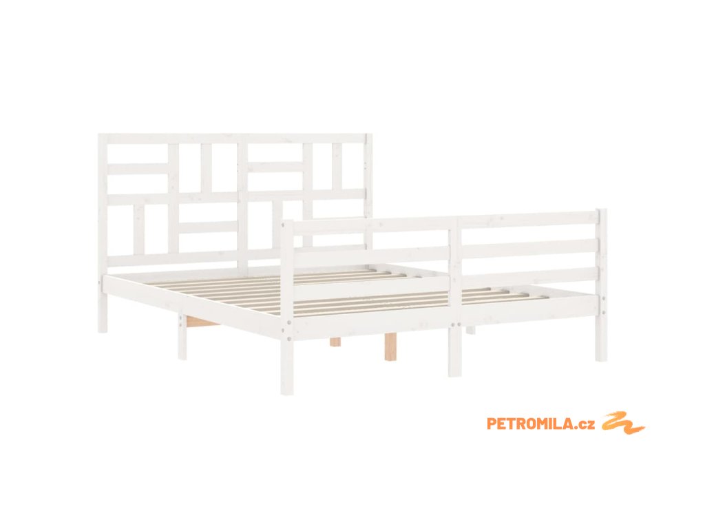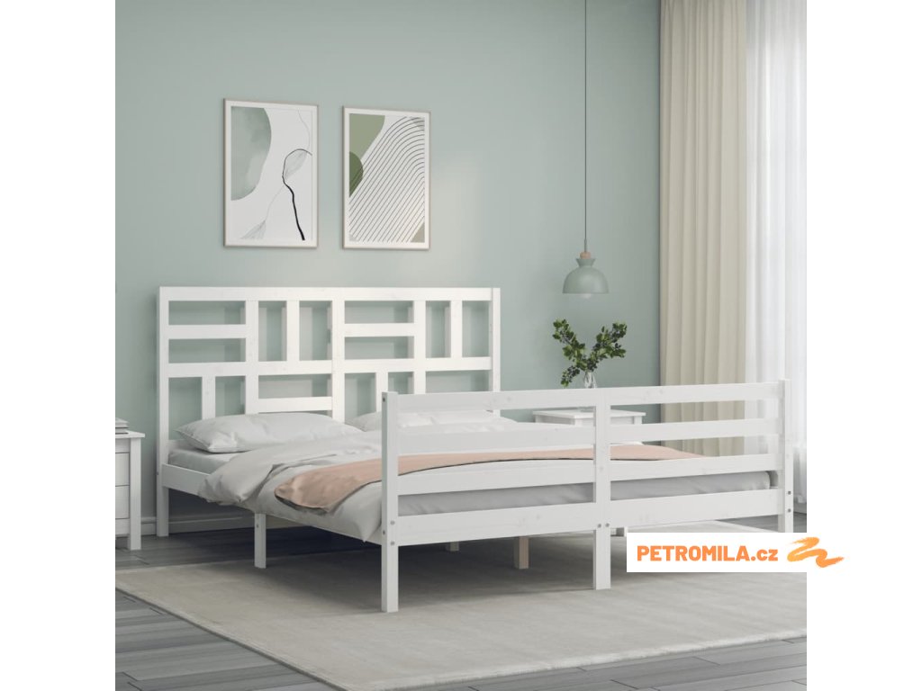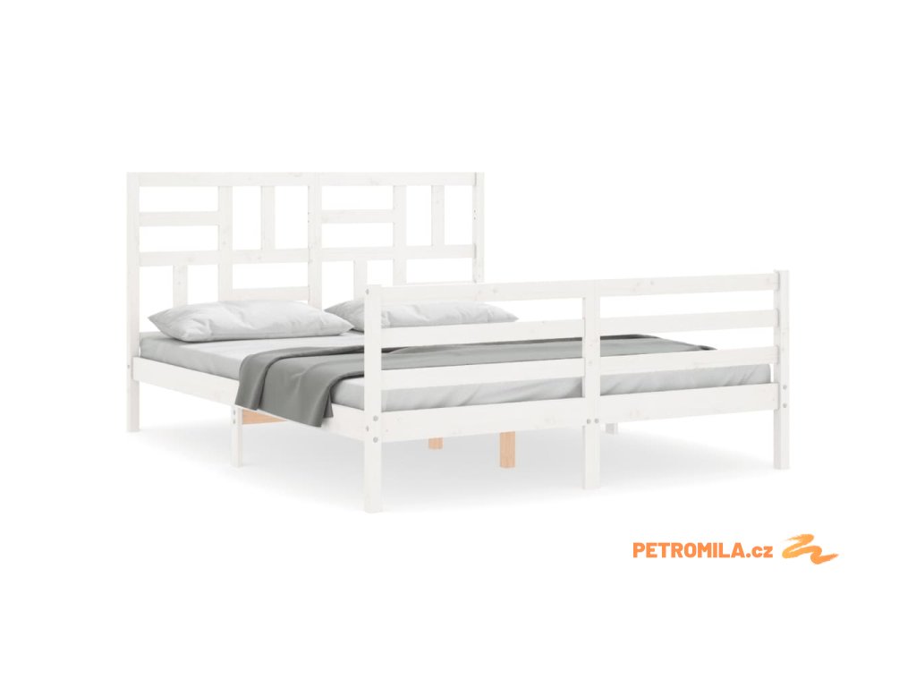 Rám postele s čelem bílý 160 x 200 cm masivní dřevo