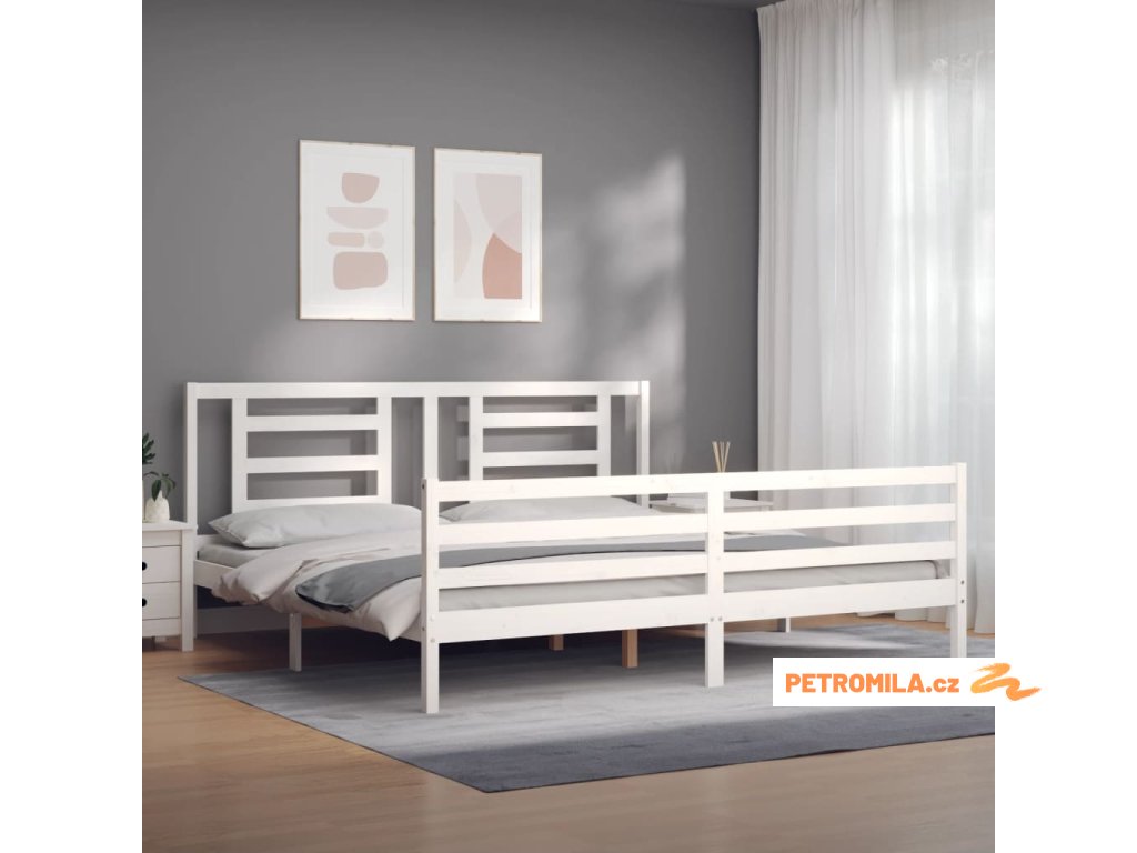 Rám postele s čelem bílý 200 x 200 cm masivní dřevo
