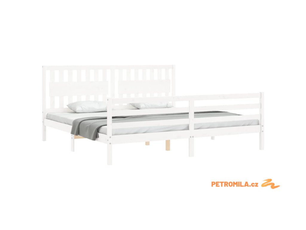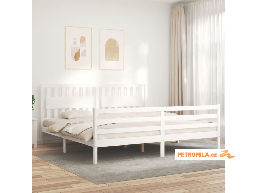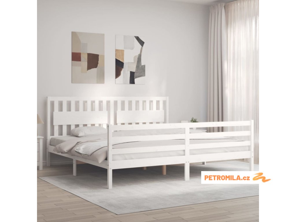 Rám postele s čelem bílý 200 x 200 cm masivní dřevo