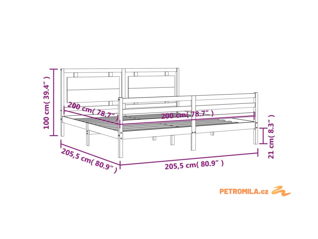 - Celkové rozměry postele: 205,5 x 205,5 x 100 cm (D x Š x V)