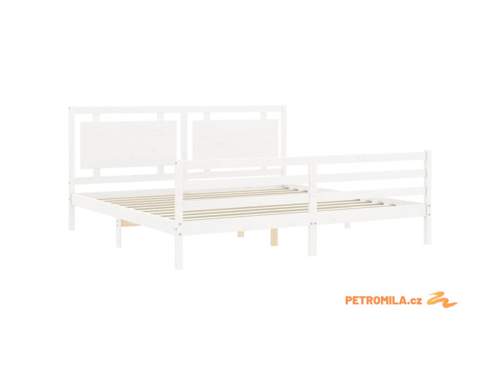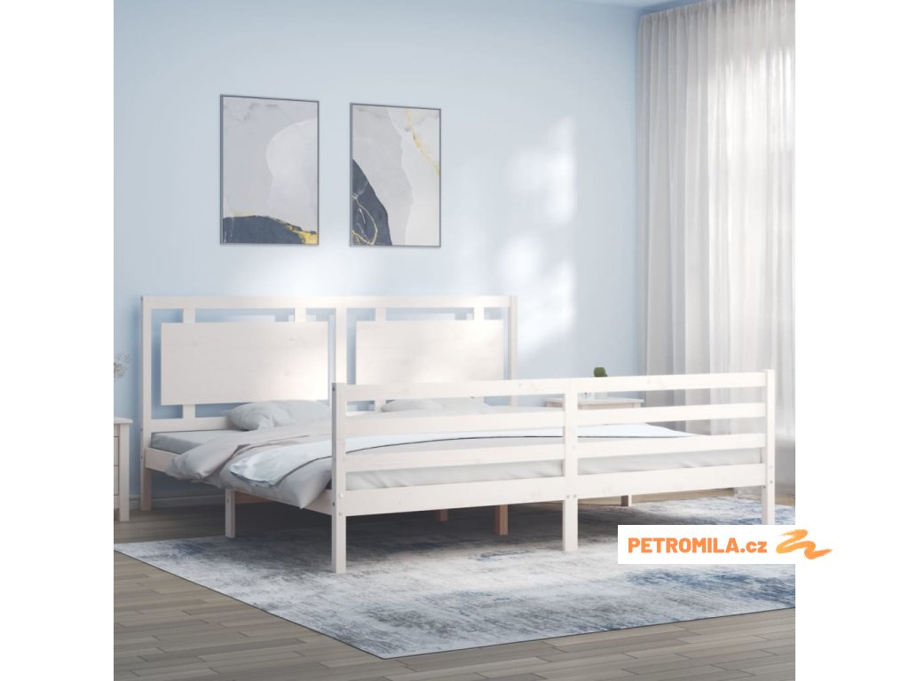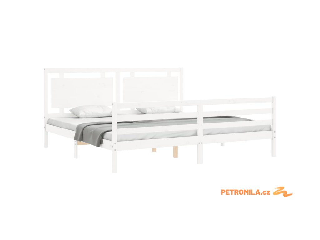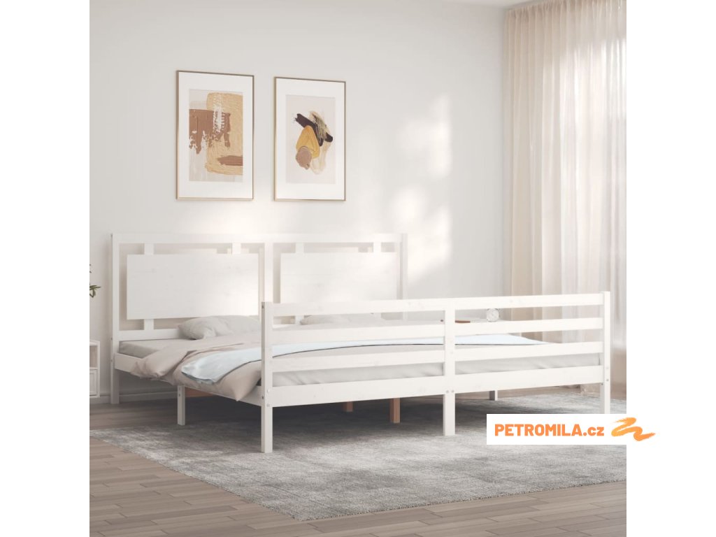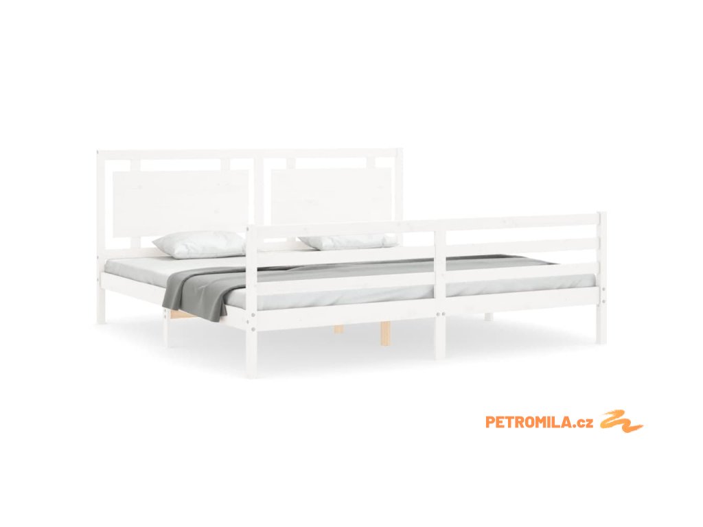 Rám postele s čelem bílý 200 x 200 cm masivní dřevo