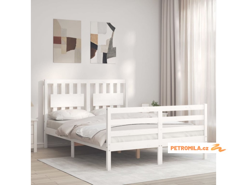 Rám postele s čelem bílý Double masivní dřevo