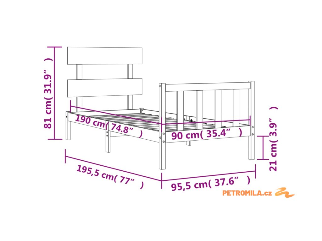 - Celkové rozměry postele: 195,5 x 95,5 x 81 cm (D x Š x V)