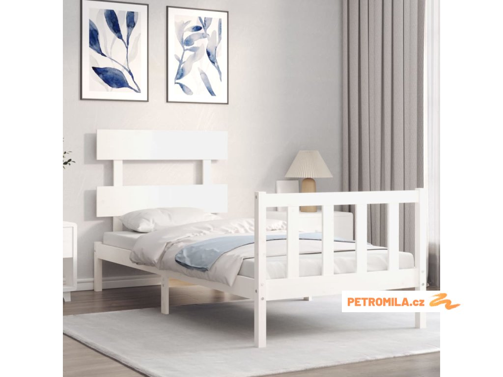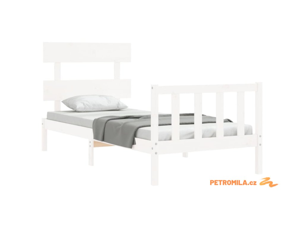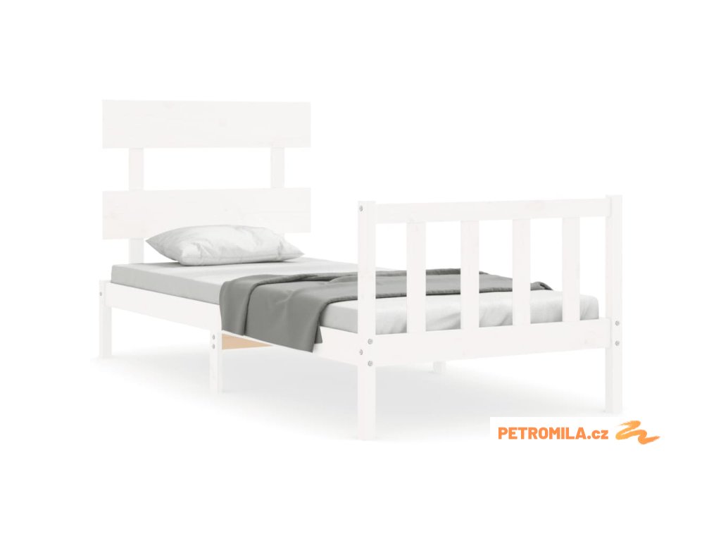 Rám postele s čelem bílý Single masivní dřevo
