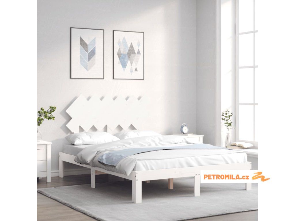 Rám postele s čelem bílý Small Double masivní dřevo