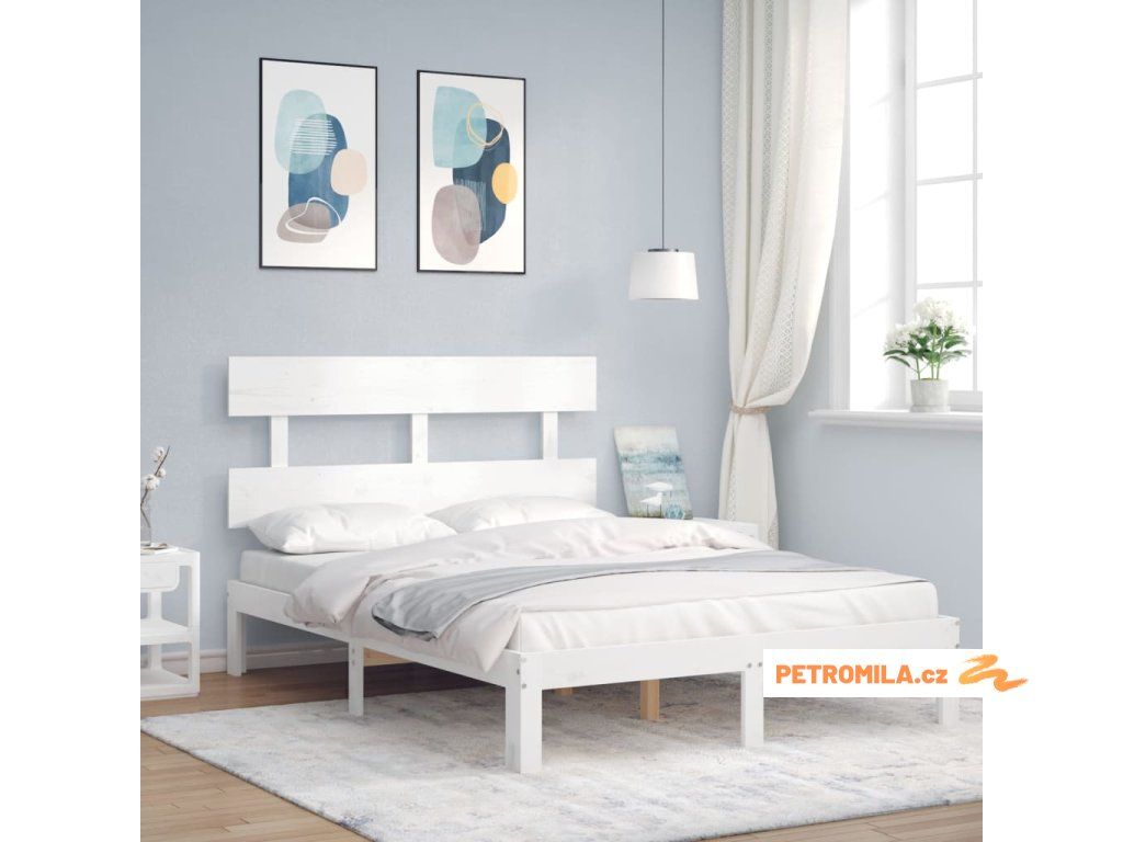 Rám postele s čelem bílý Small Double masivní dřevo