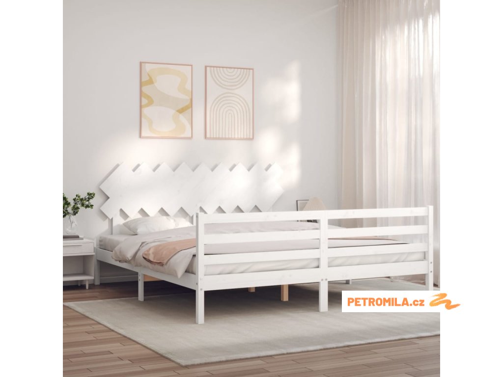 Rám postele s čelem bílý Super King Size masivní dřevo