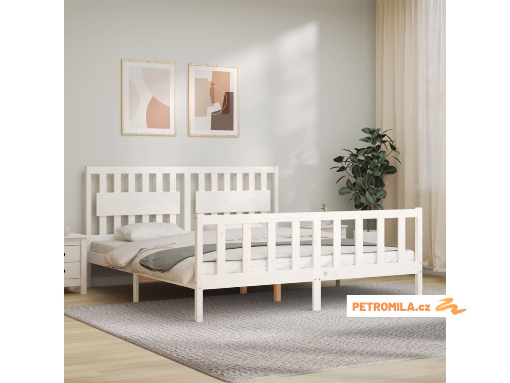 Rám postele s čelem bílý Super King Size masivní dřevo