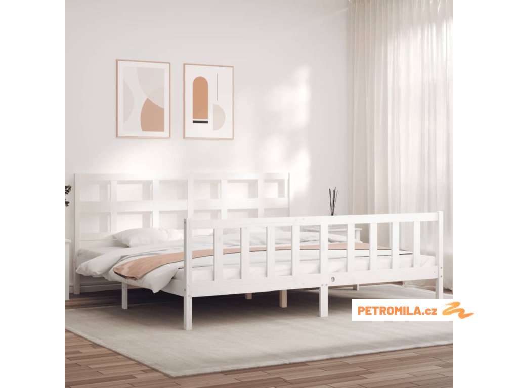 Rám postele s čelem bílý Super King Size masivní dřevo