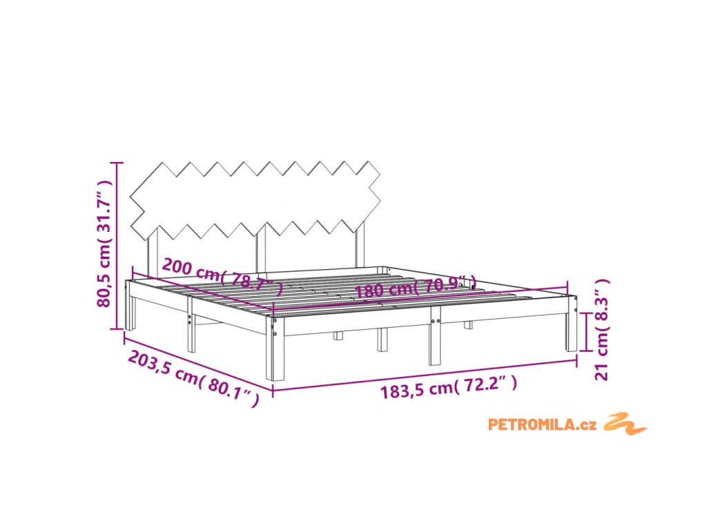 - Celkové rozměry postele: 203,5 x 183,5 x 80,5 cm (D x Š x V)