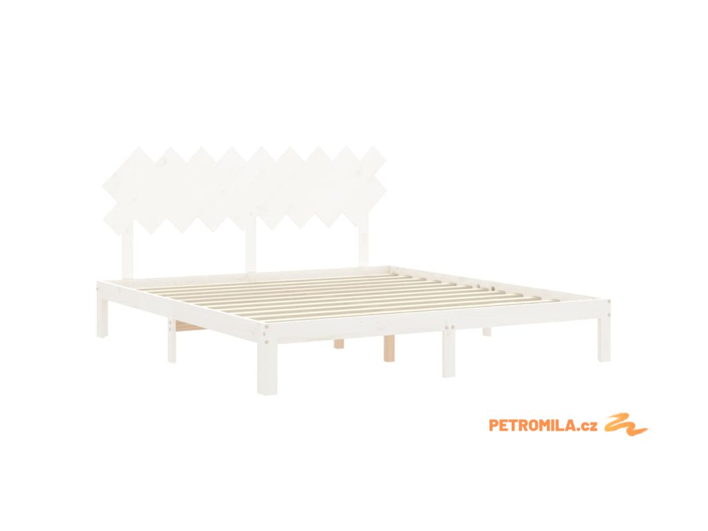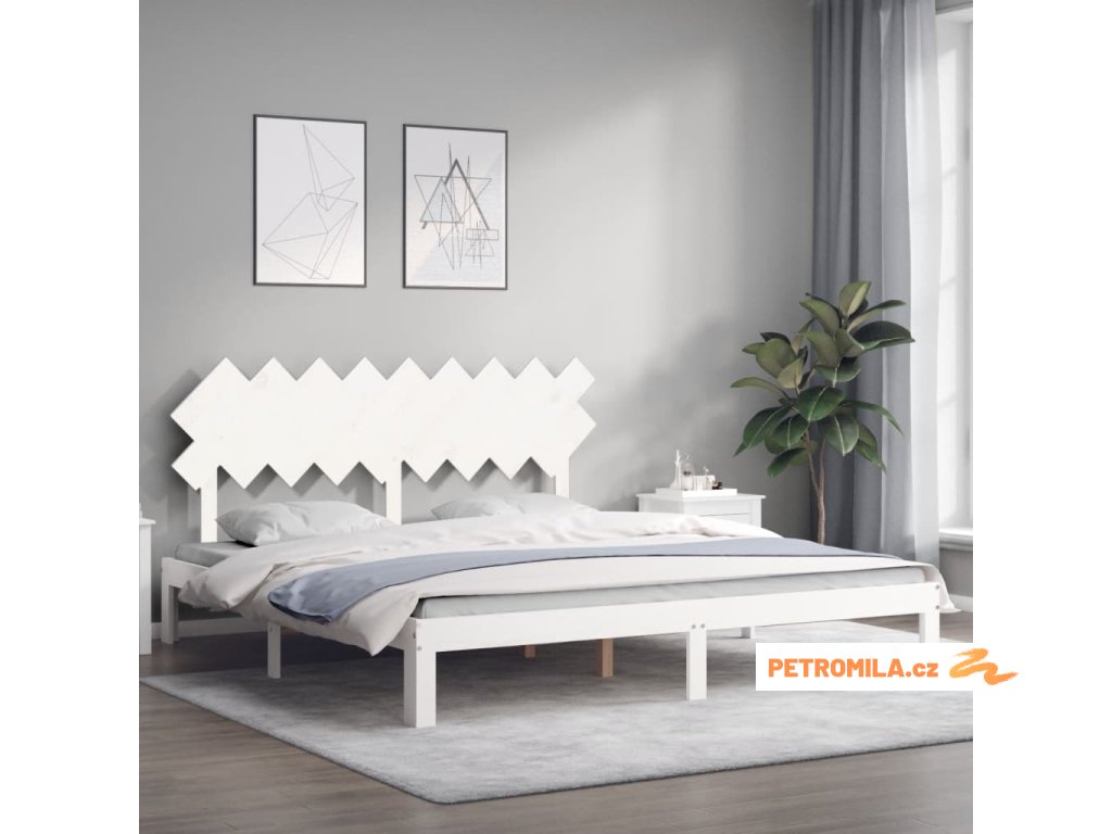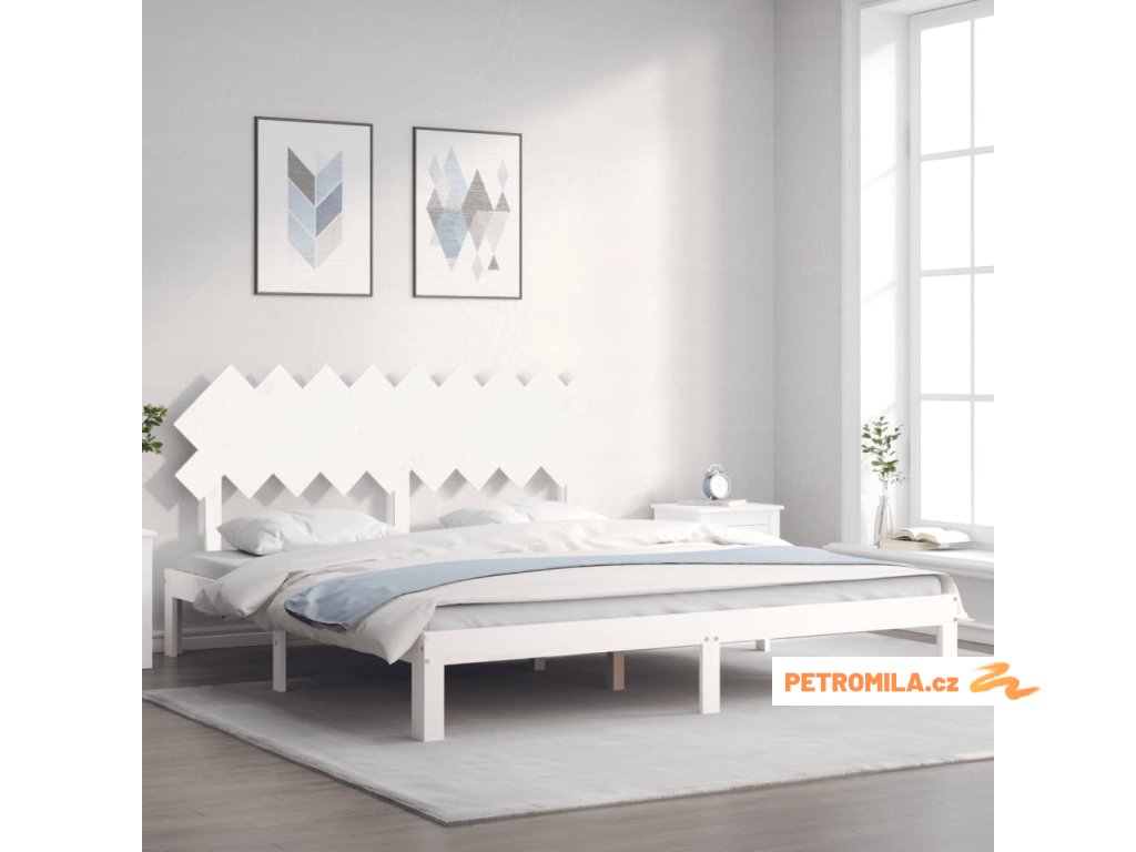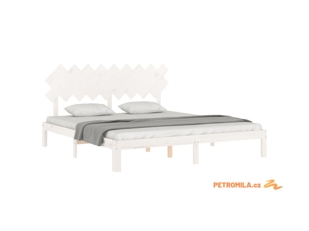 Rám postele s čelem bílý Super King Size masivní dřevo