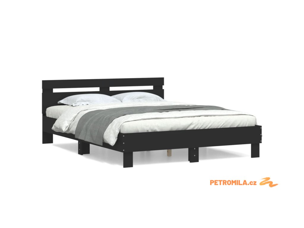 Rám postele s čelem černý 150 x 200 cm kompozitní dřevo