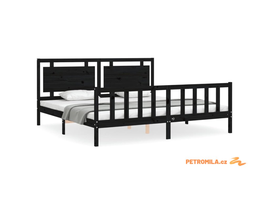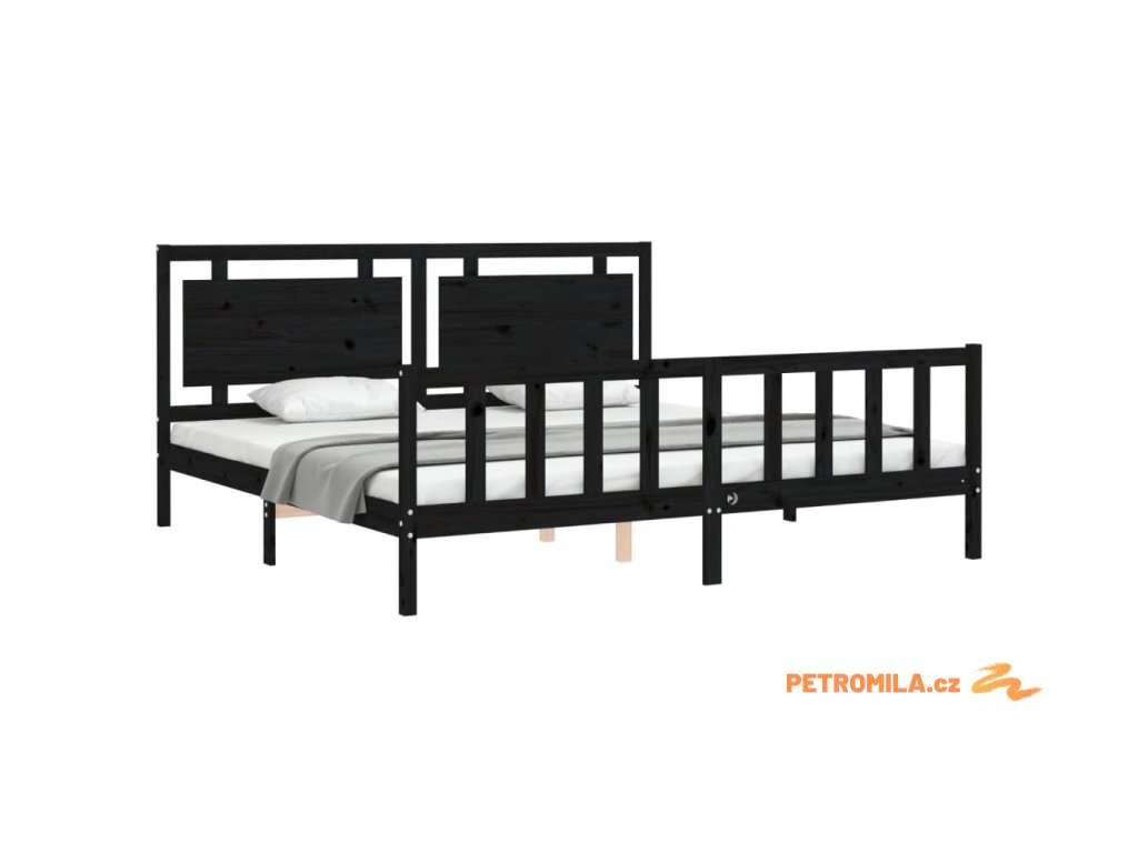 Rám postele s čelem černý 200 x 200 cm masivní dřevo