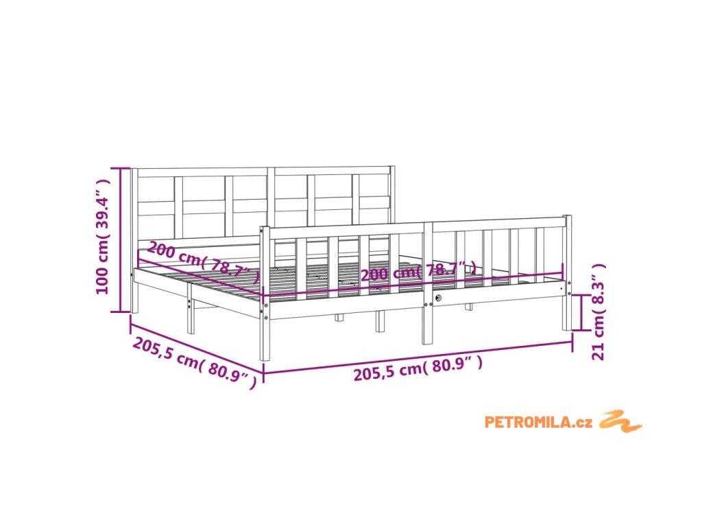 - Celkové rozměry postele: 205,5 x 205,5 x 100 cm (D x Š x V)