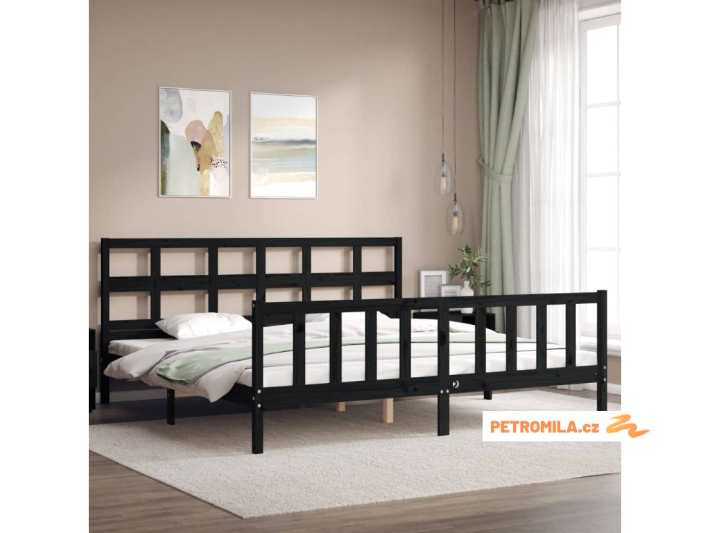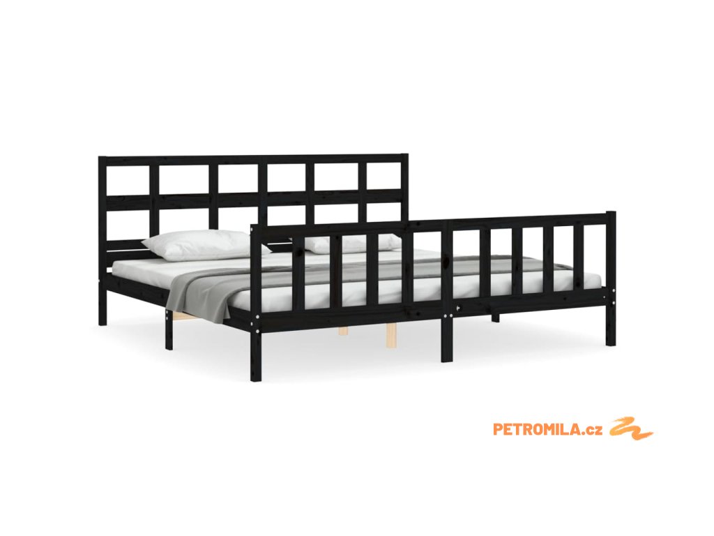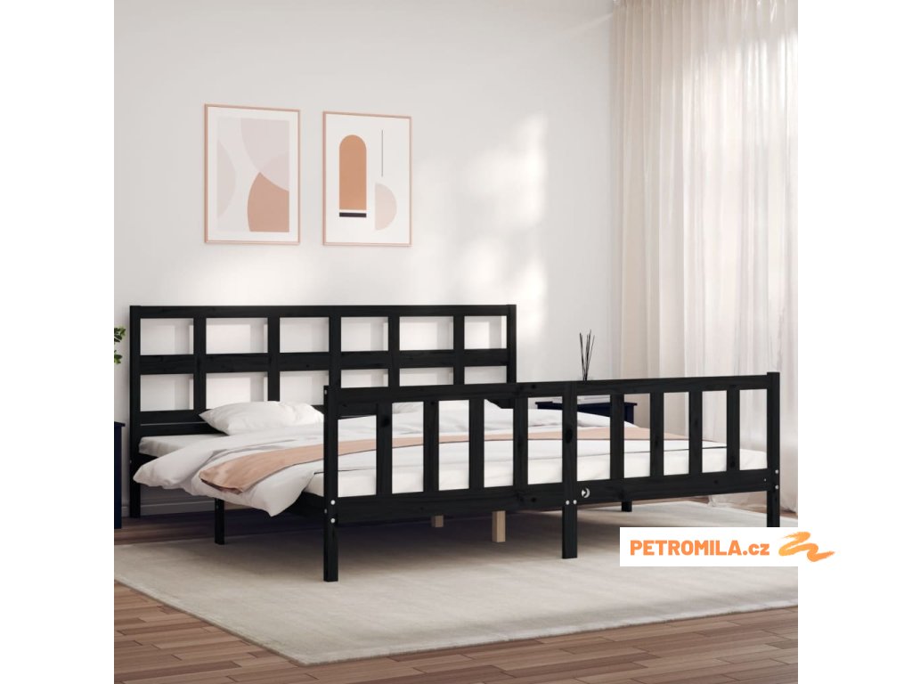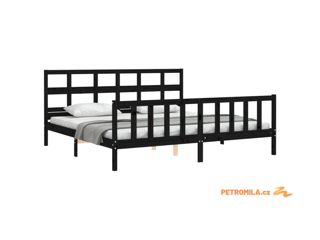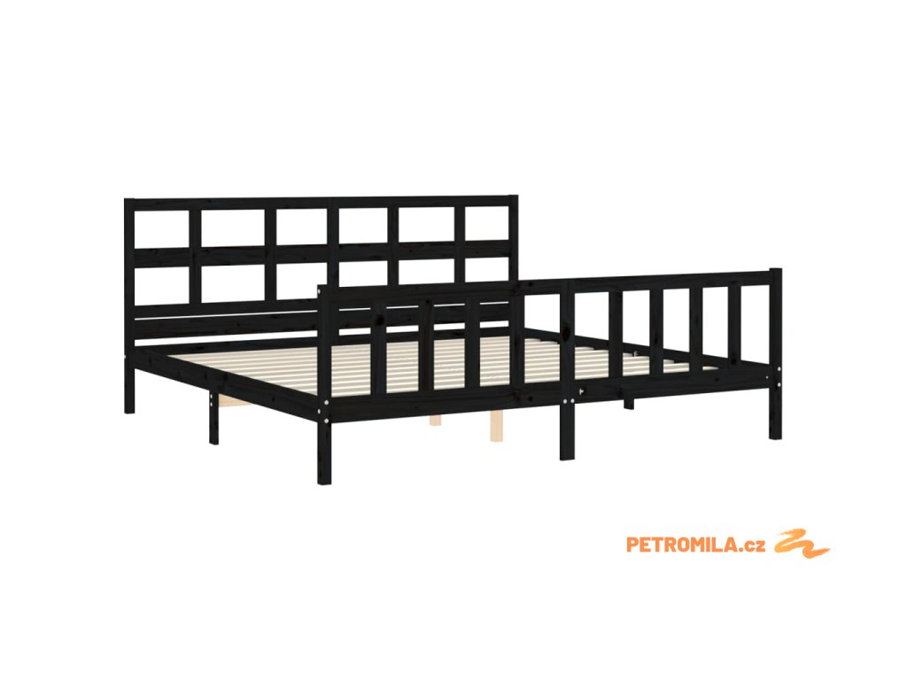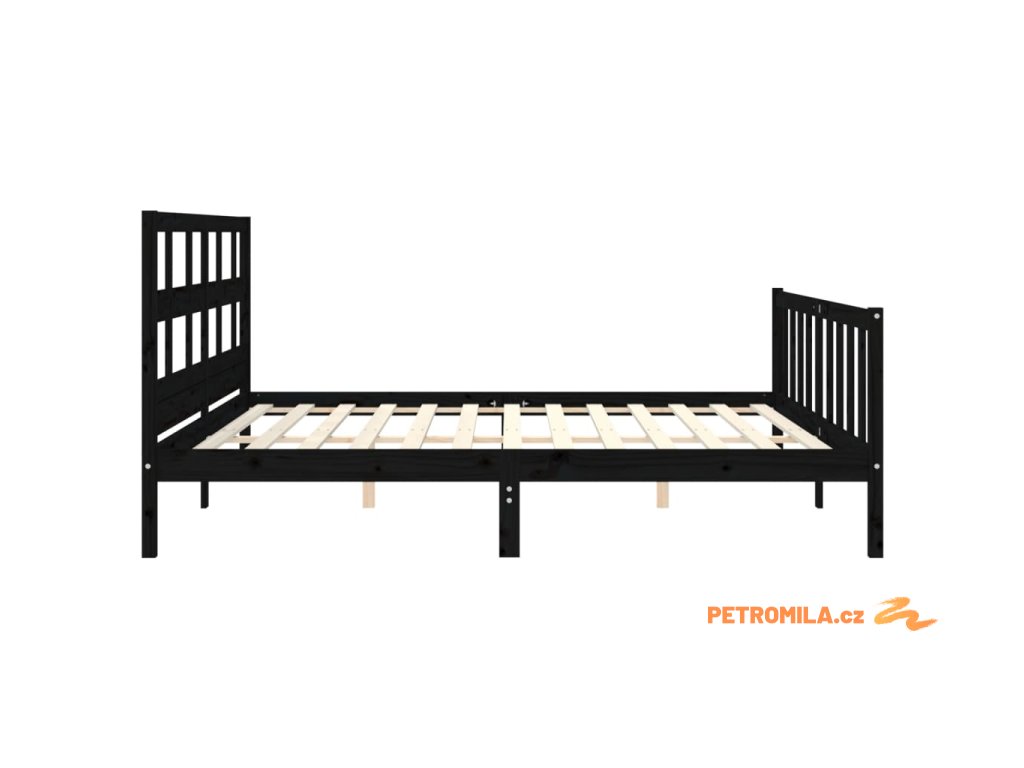 Rám postele s čelem černý 200 x 200 cm masivní dřevo