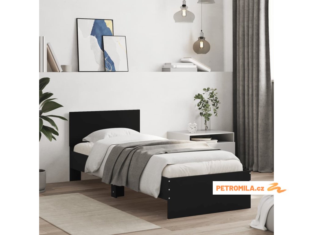 Rám postele s čelem černý 90 x 200 cm kompozitní dřevo