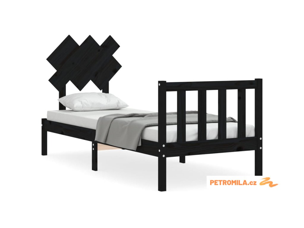 Rám postele s čelem černý Small Single masivní dřevo