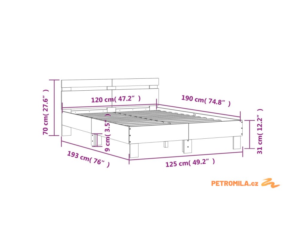 Rám postele s čelem dub sonoma 120 x 190 cm kompozitní dřevo