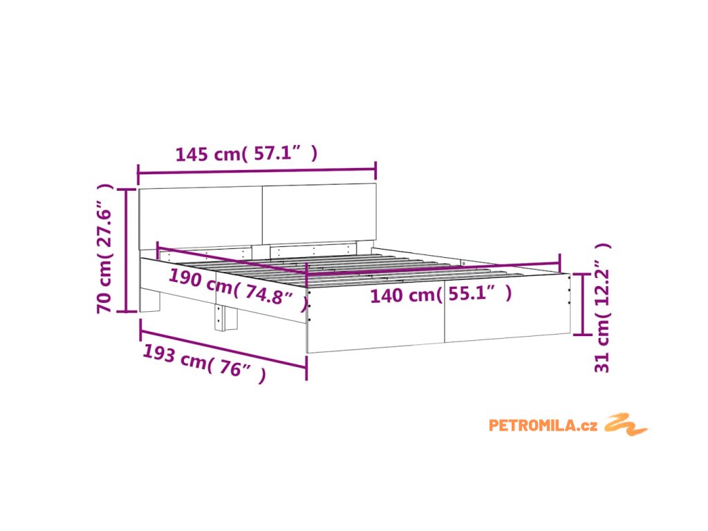 Rám postele s čelem dub sonoma 140 x 190 cm