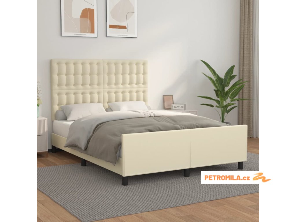 Rám postele s čelem krémový 140x200 cm umělá kůže