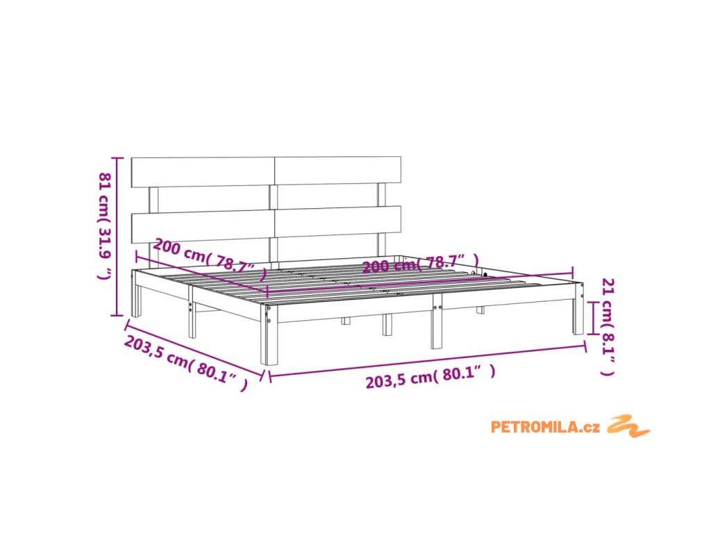 - Celkové rozměry postele: 203,5 x 203,5 x 81 cm (D x Š x V)