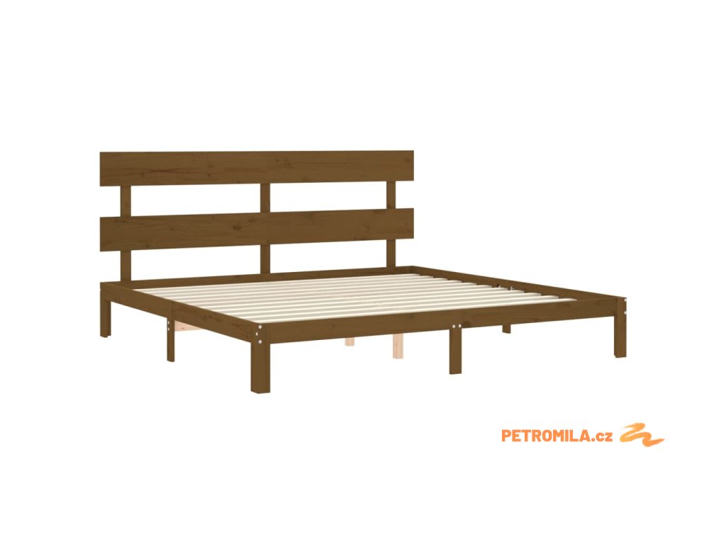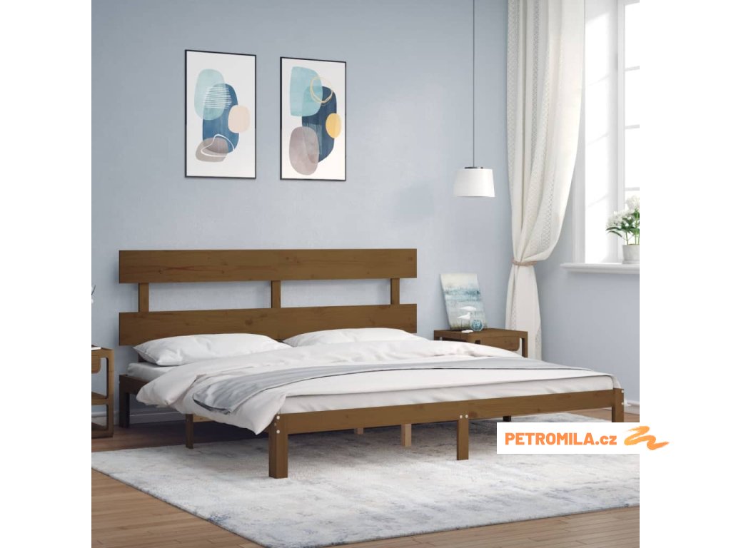 Rám postele s čelem medově hnědý 200 x 200 cm masivní dřevo