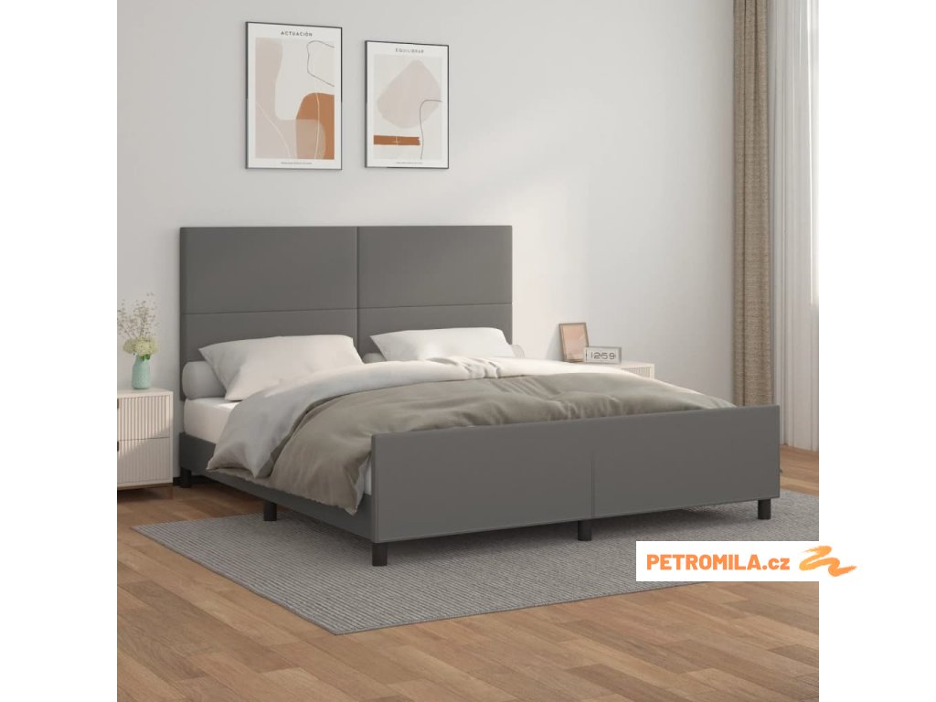 Rám postele s čelem šedý 160x200 cm umělá kůže