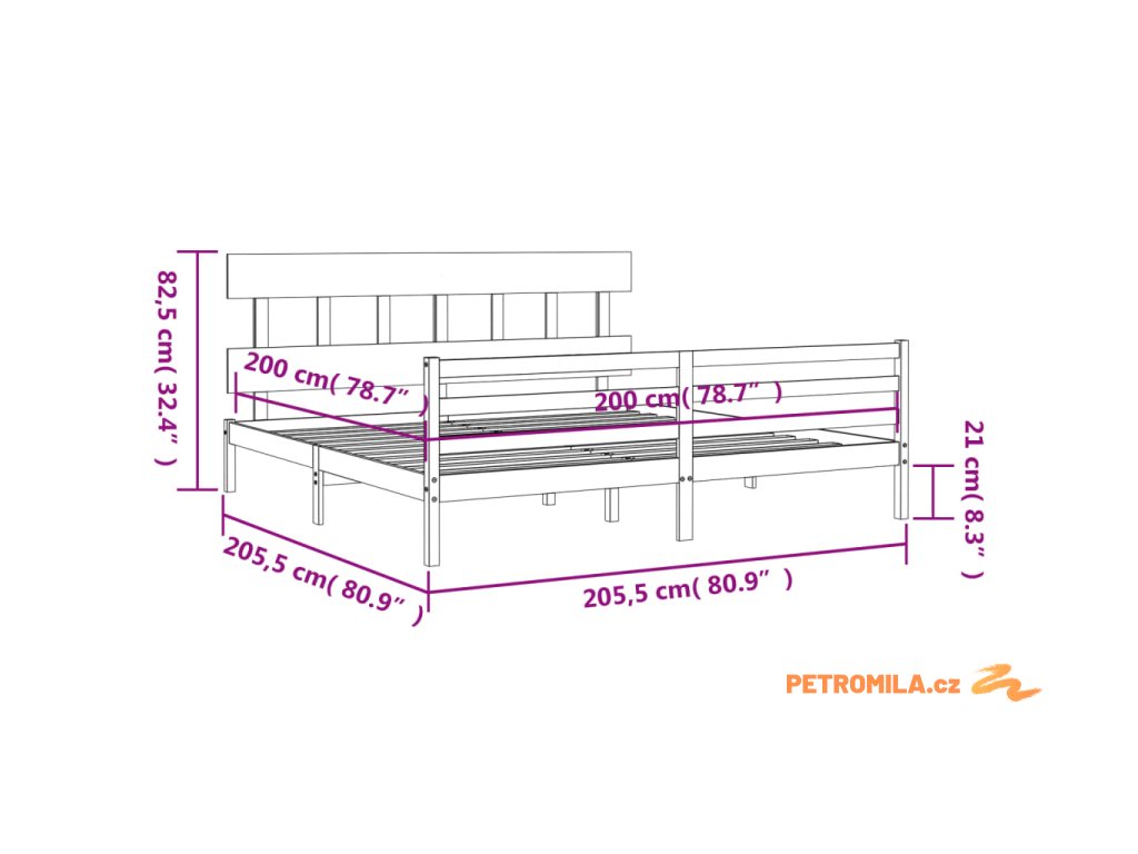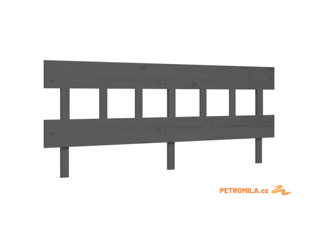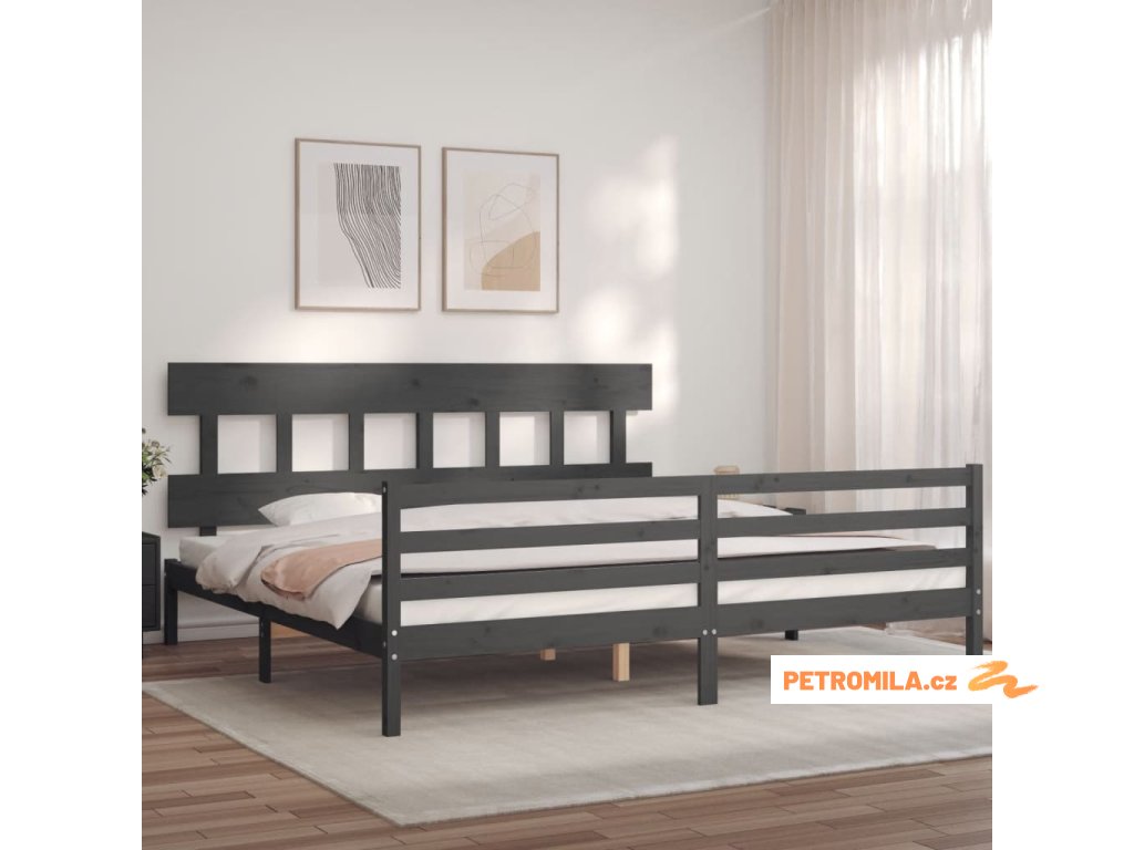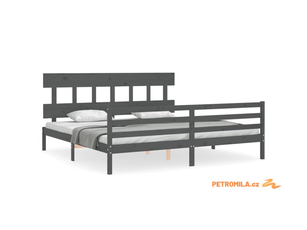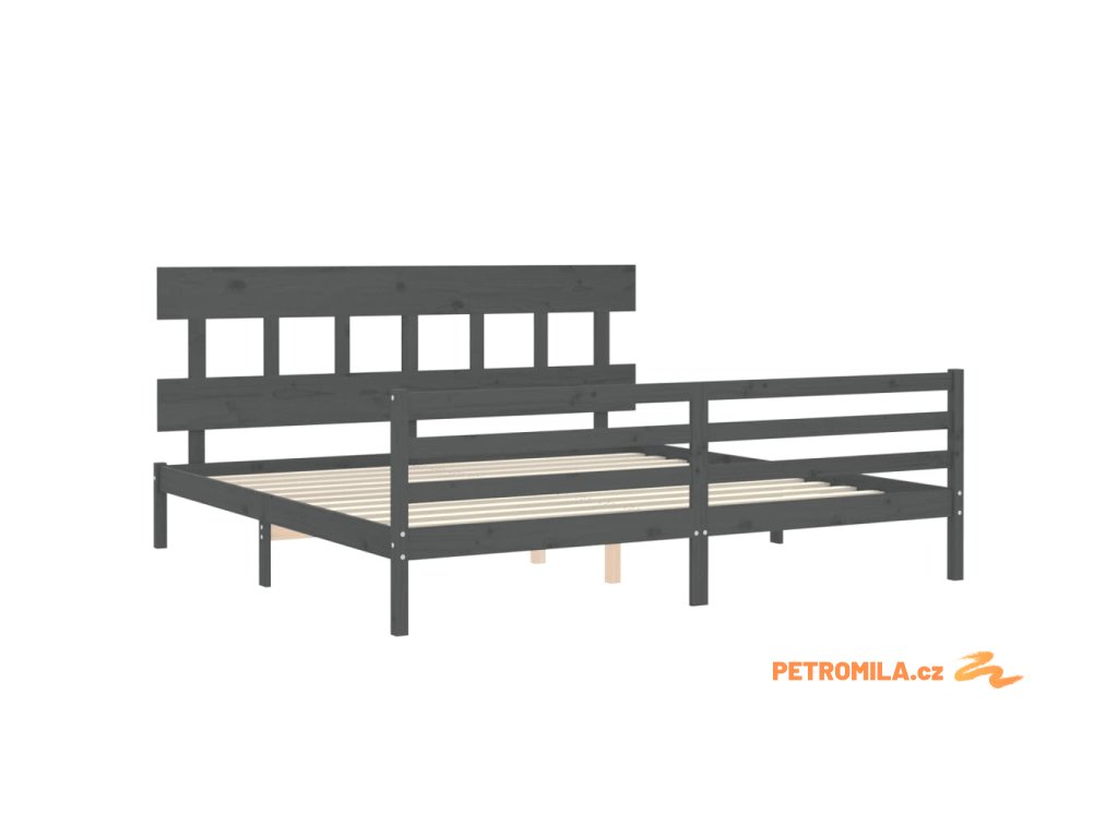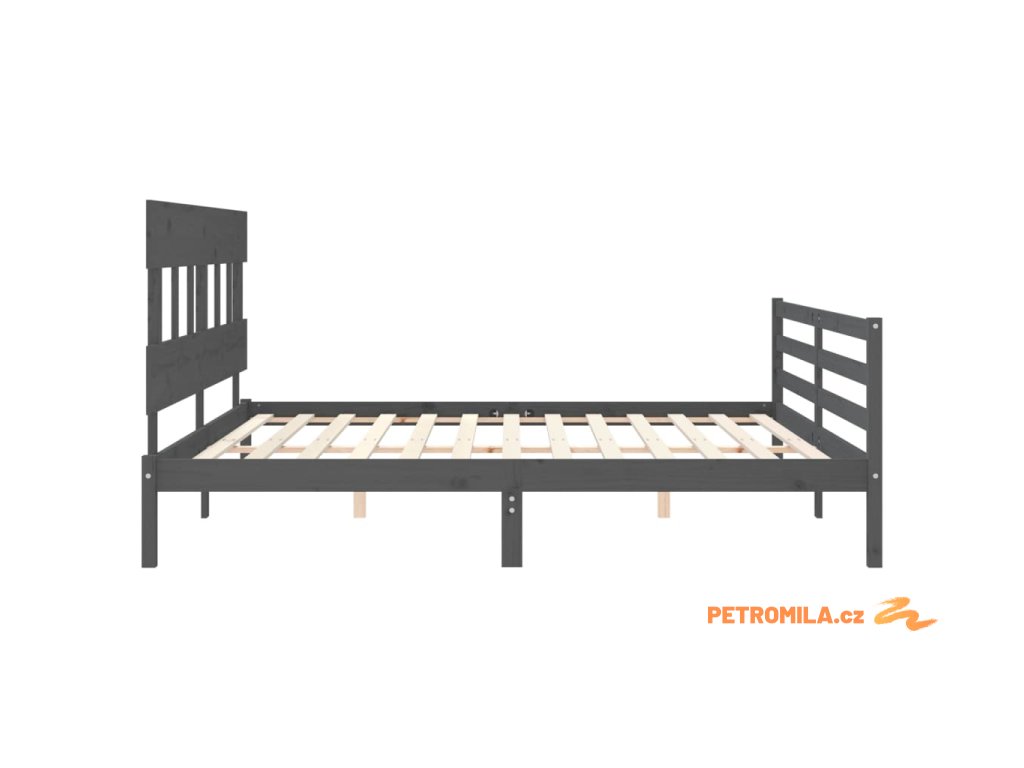 Rám postele s čelem šedý 200 x 200 cm masivní dřevo