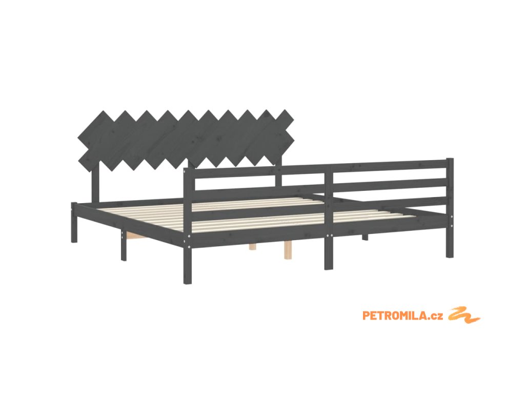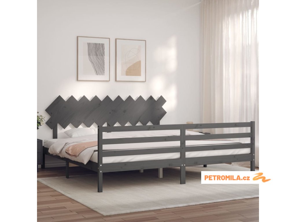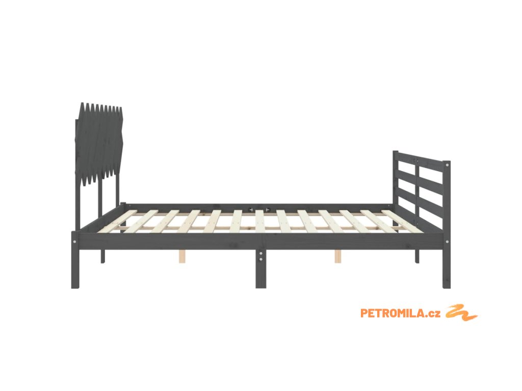 Rám postele s čelem šedý 200 x 200 cm masivní dřevo