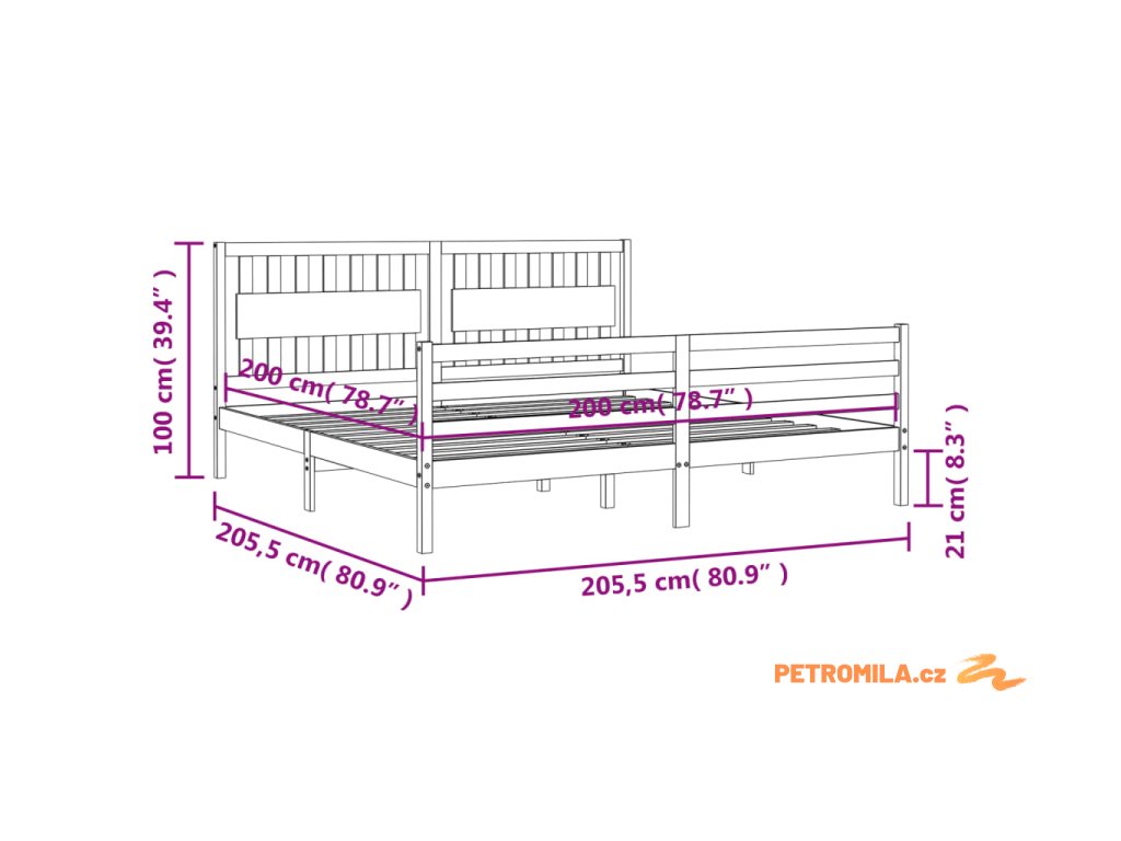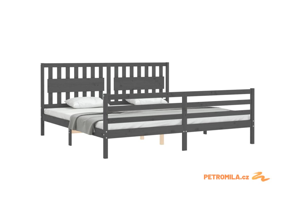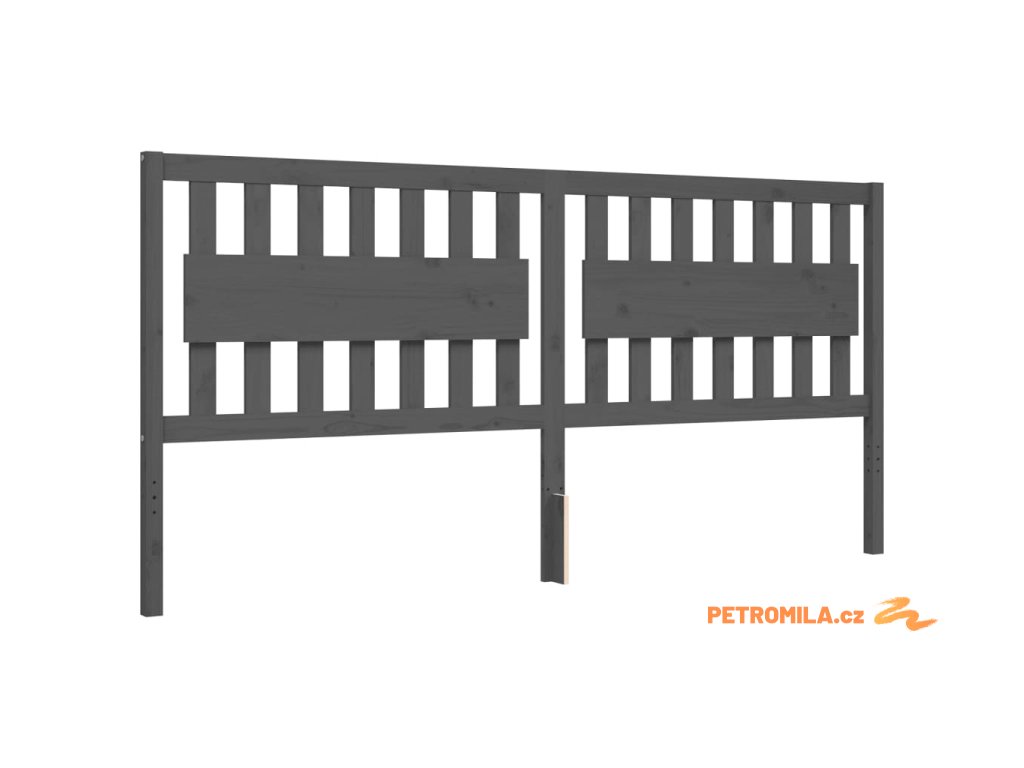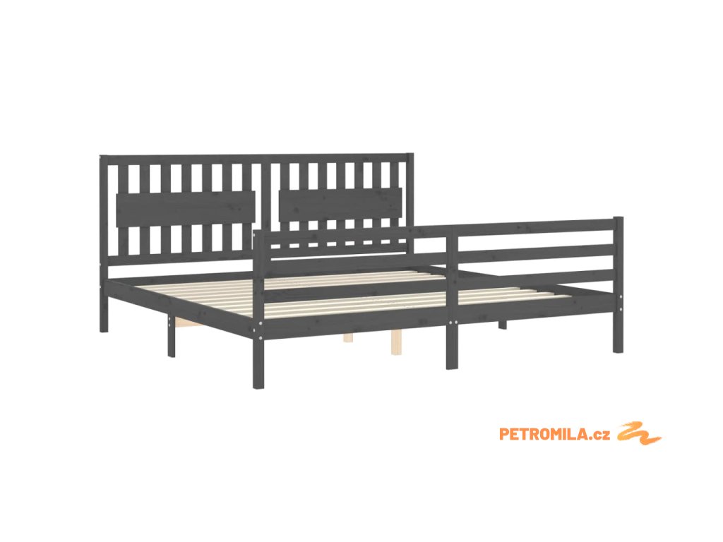 Rám postele s čelem šedý 200 x 200 cm masivní dřevo
