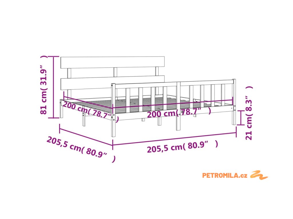 - Celkové rozměry postele: 205,5 x 205,5 x 81 cm (D x Š x V)