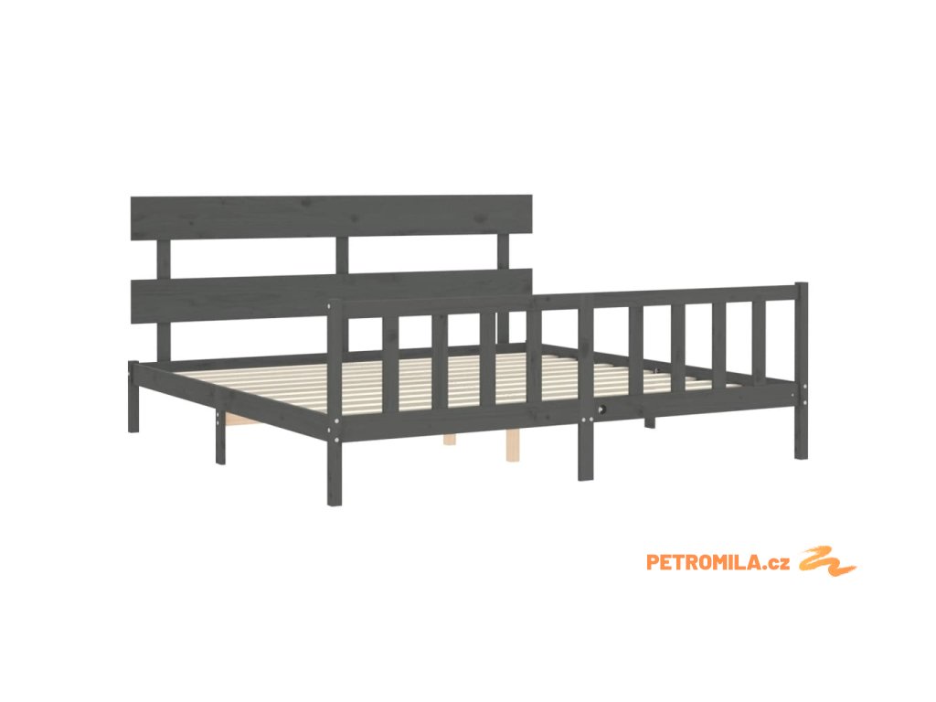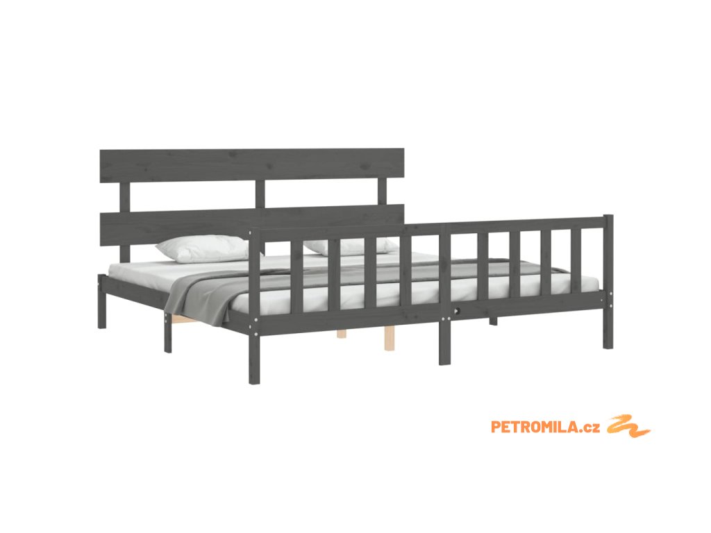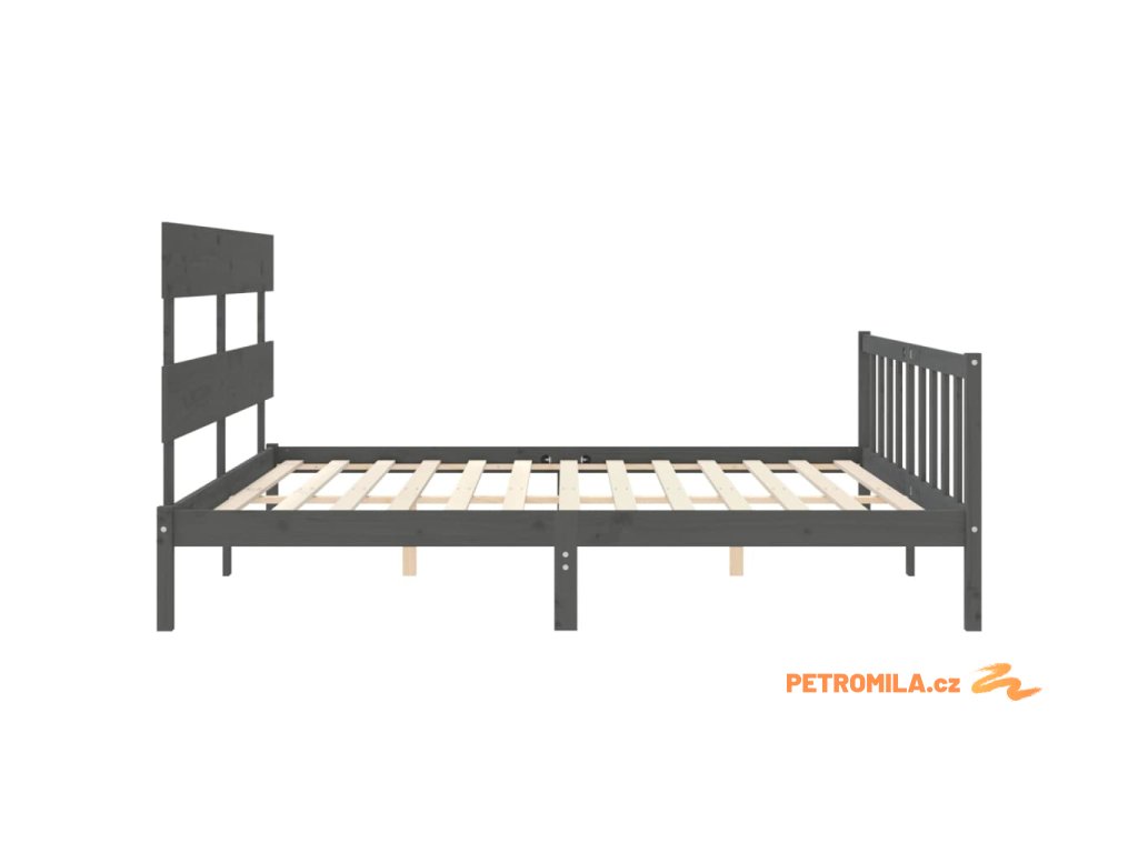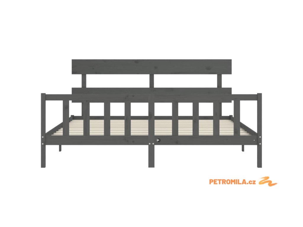 Rám postele s čelem šedý 200 x 200 cm masivní dřevo