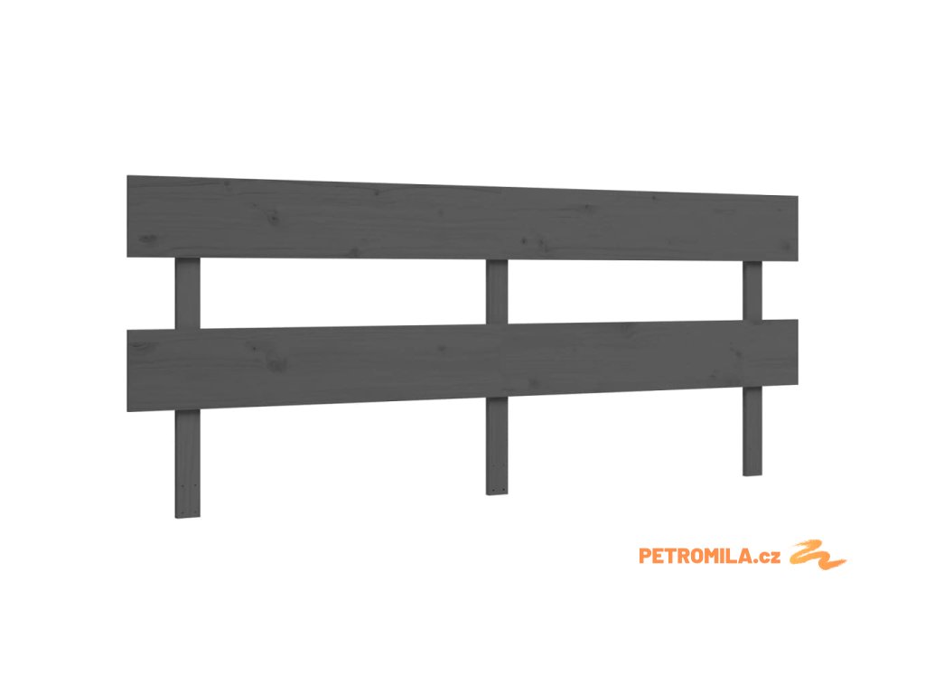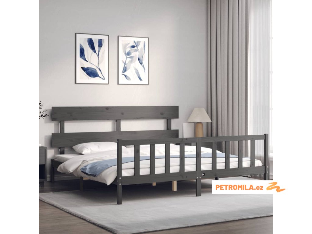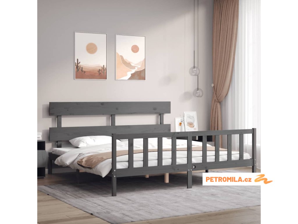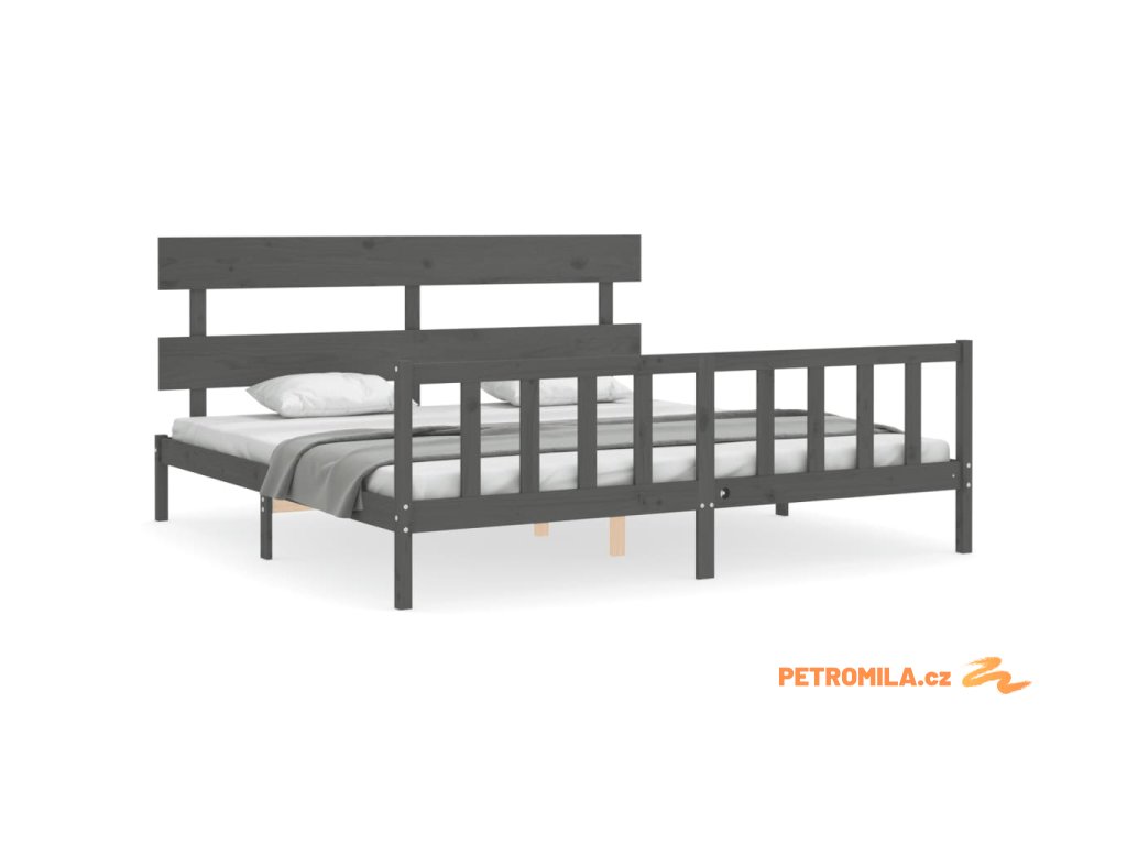 Rám postele s čelem šedý 200 x 200 cm masivní dřevo