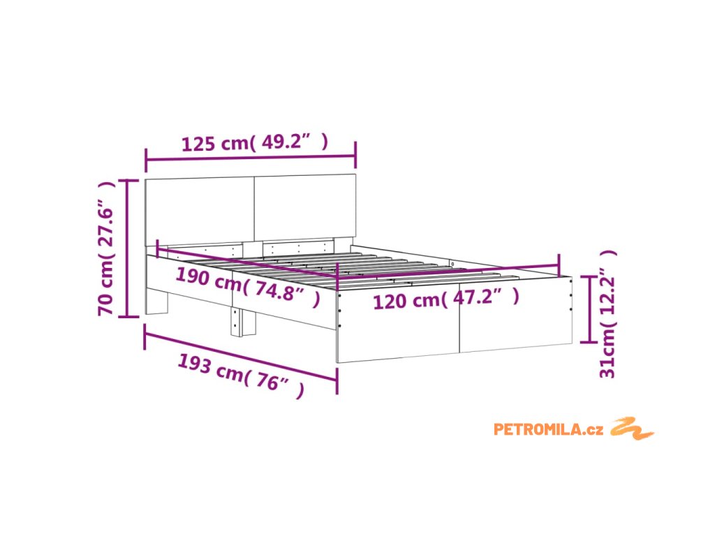 Rám postele s čelem šedý sonoma 120 x 190 cm