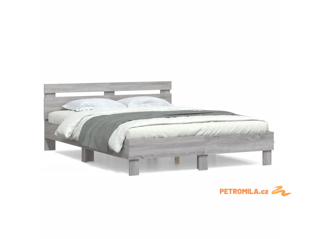 Rám postele s čelem šedý sonoma 140 x 190 cm kompozit