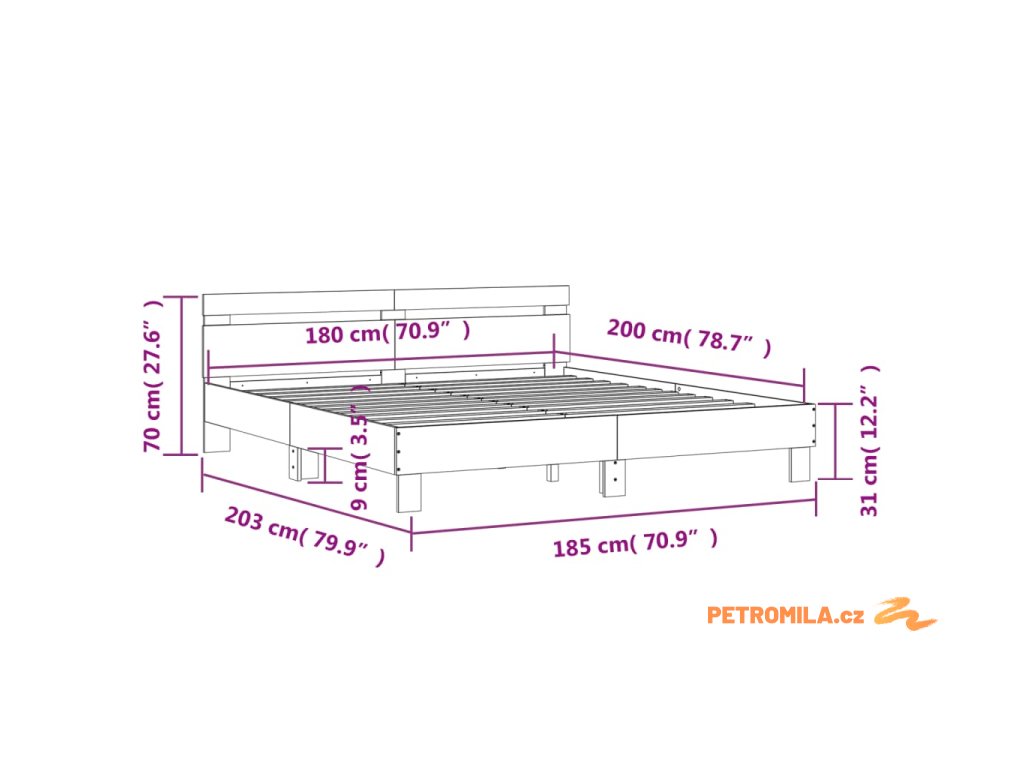 Rám postele s čelem šedý sonoma 180 x 200 cm kompozitní dřevo